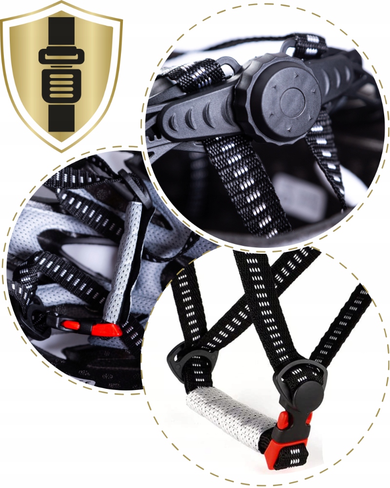 Solidne zapięcie kasku umożliwia szybkie i bezpieczne zakładanie oraz zdejmowanie kasku, zapewniając jednocześnie stabilność i pewność, że kask nie przesunie się w trakcie jazdy.