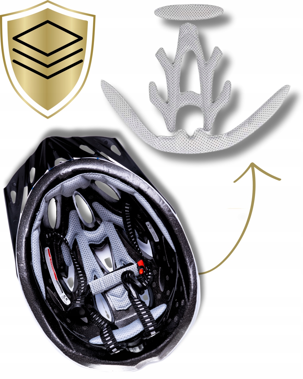 Wewnątrz kasku zastosowano gąbkę zapewniającą dodatkowy komfort i bezpieczeństwo. Amortyzuje ona drobne wstrząsy, a także absorbuje pot, co zapobiega podrażnieniom skóry i utrzymuje uczucie świeżości przez cały czas jazdy.