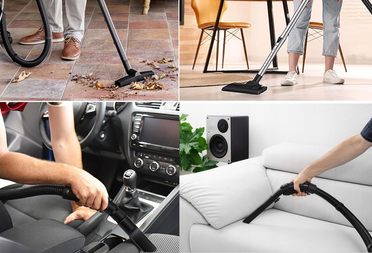 ✅ Пылесос имеет удобную ручку для переноса и HEPA-фильтр, обеспечивающий возможность вытяжной вентиляции пыли или пыли.