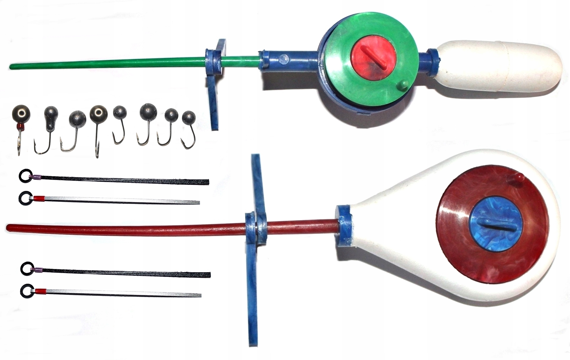 W ZESTAWIE DWIE WĘDKI POPULARNE "BAŁAŁAJKI" + CZTERY KIWOKI PLASTIKOWE + OSIEM MORMYSZEK - BOCZNE MOCOWANIE.