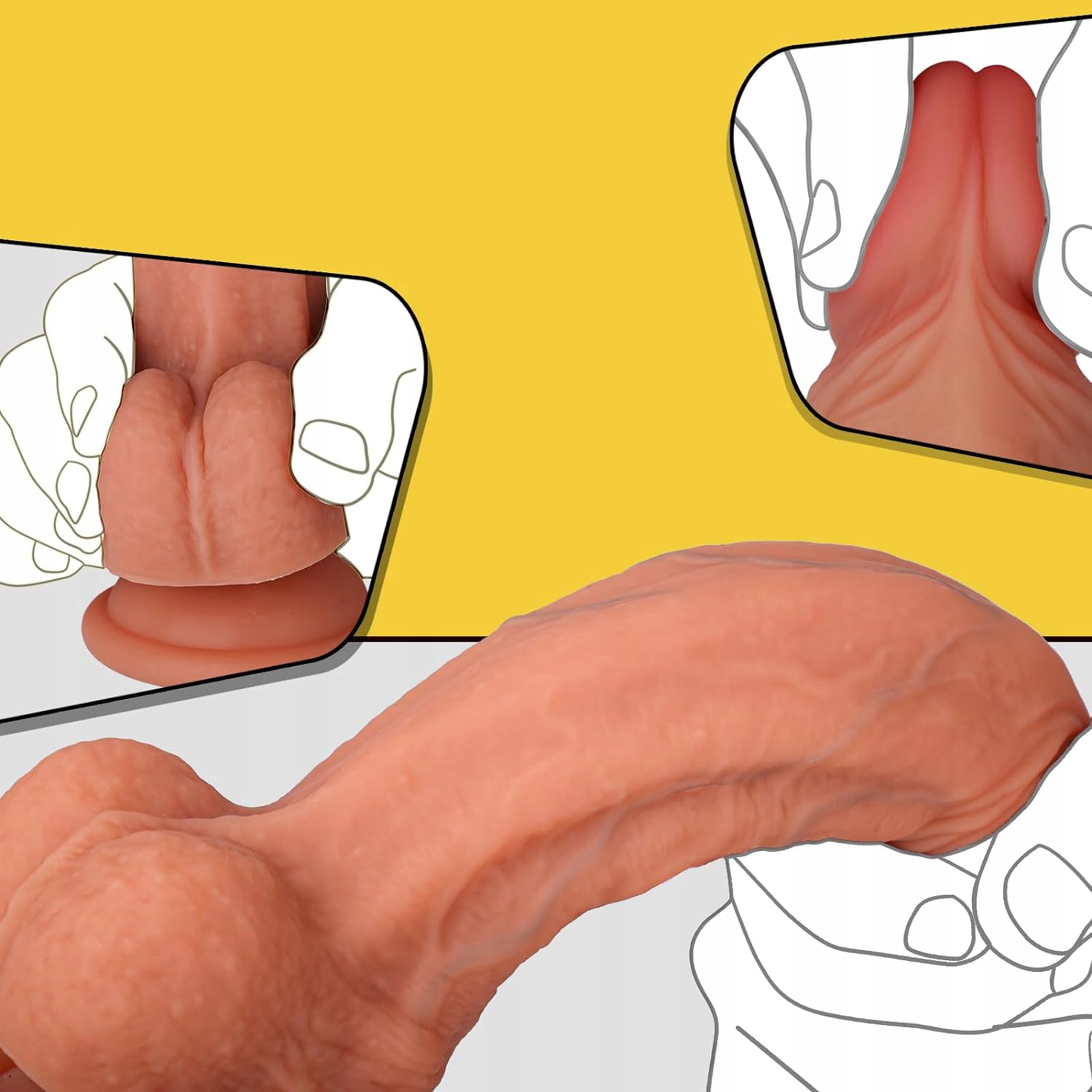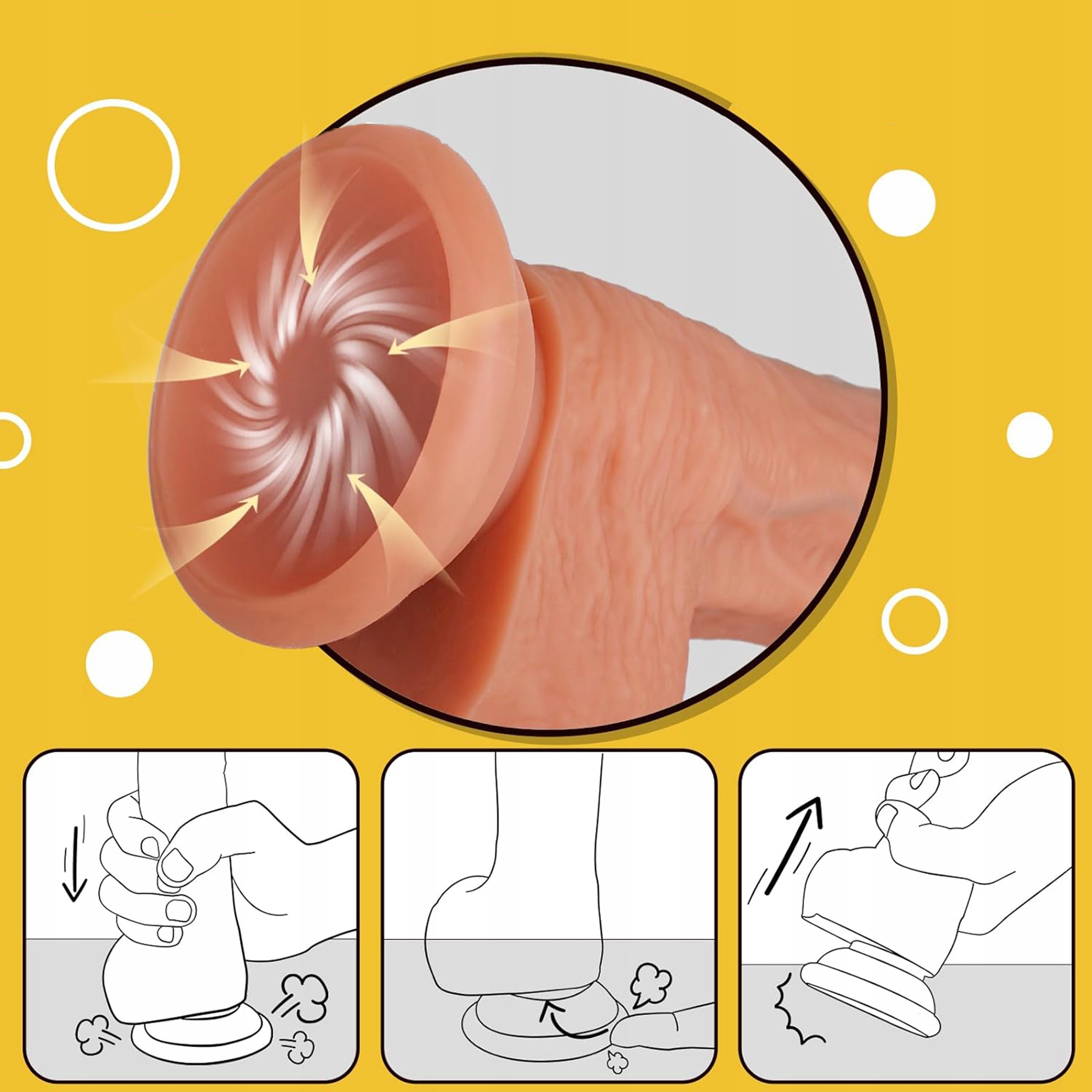 Супер реалистичный пенис изготовлен из мягкого материала, который на ощупь напоминает человеческий кожу. Фаллоимитатор полностью покрыт жилками, также имеет слегка набухшую головку и большое яичко. Пенис был помещен на прочную присоску, благодаря которой вы прикрепляете его к любой гладкой поверхности, разнообразить эротическое удовольствие с гаджетом. Игрушка гибкая и гибкий вы можете согнуть и согнуть его по своему желанию, и он вернется в исходное положение.