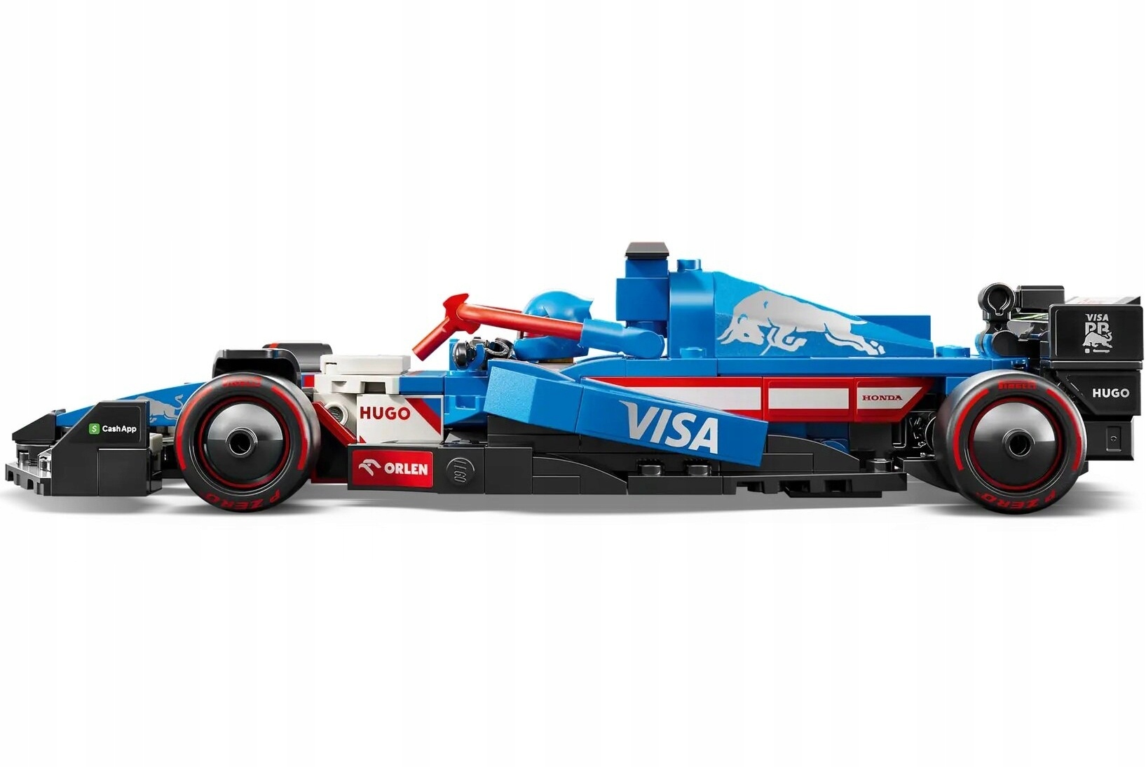 Model samochodu F1 ma kokpit otwierany przez podniesienie pałąka systemu halo, tylne skrzydło, zawieszenie typu wishbone, naklejki sponsorów i szersze tylne opony z napisem „Pirelli”. Bolid F1 zawiera także minifigurkę kierowcy w kombinezonie zespołu RB i kasku, którego można umieścić w kokpicie i odgrywać wyścigi. Po zakończonej zabawie model będzie się świetnie prezentował na półce.
