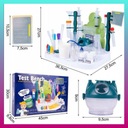 Dodatkowo, zestaw posiada ruchome elementy, takie jak obracające się uchwyty do probówek i funkcjonalne mechanizmy strzykawek, które umożliwiają precyzyjne wykonywanie eksperymentów.
