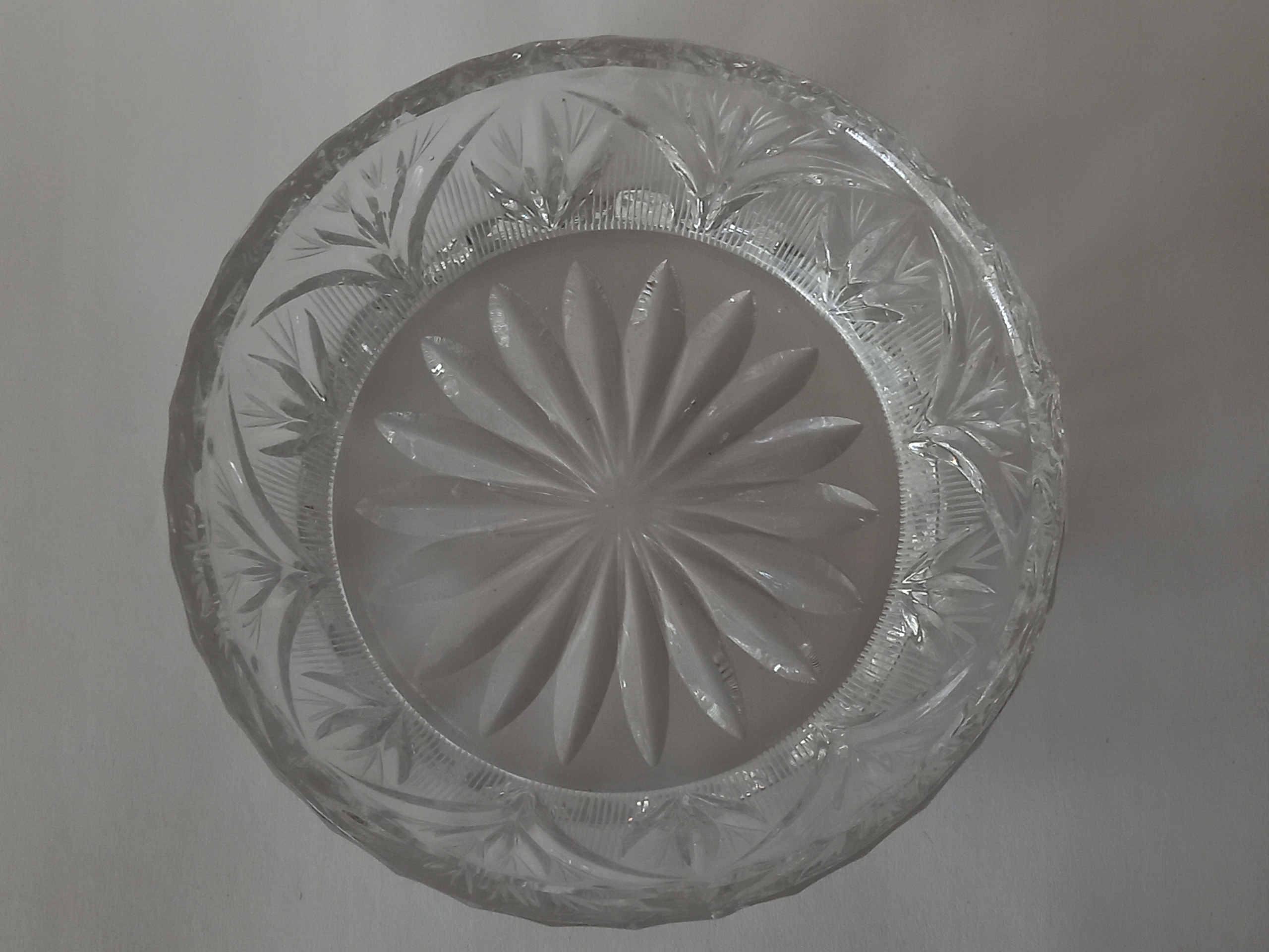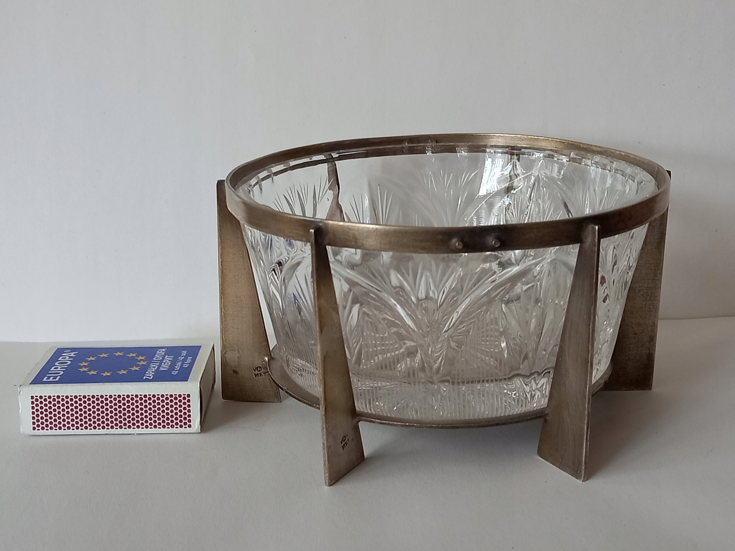 cukiernica odkryta HEFRA sygnatura,wkład kryształowy oryginalny w bdb stanie,platerowana,nie posiada uchwytu więc zaznaczyłam że do renowacji.