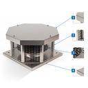 Wentylator dachowy EBERG® REF to doskonałe rozwiązanie dla osób poszukujących niezawodnego systemu wentylacji w obiektach przemysłowych, magazynach czy halach produkcyjnych. Solidna konstrukcja oraz nowoczesne technologie sprawiają, że urządzenie działa efektywnie, zapewniając optymalny przepływ powietrza. Wysoka wydajność oraz zastosowanie nowoczesnego silnika EC gwarantują oszczędność energii i długą żywotność urządzenia. Obudowa wykonana ze stali nierdzewnej zwiększa odporność na czynniki atmosferyczne i korozję, co sprawia, że urządzenie sprawdzi się nawet w trudnych warunkach.