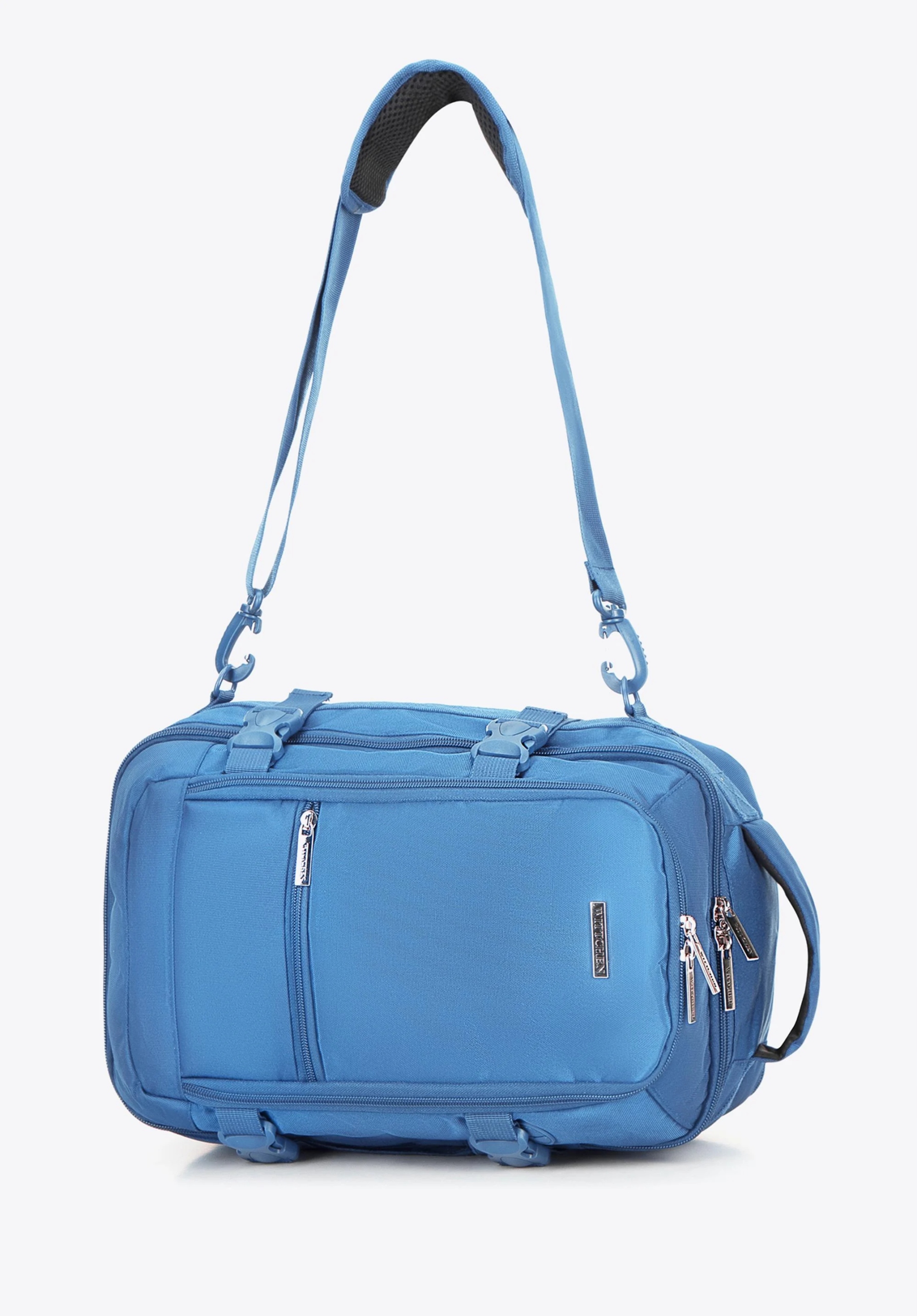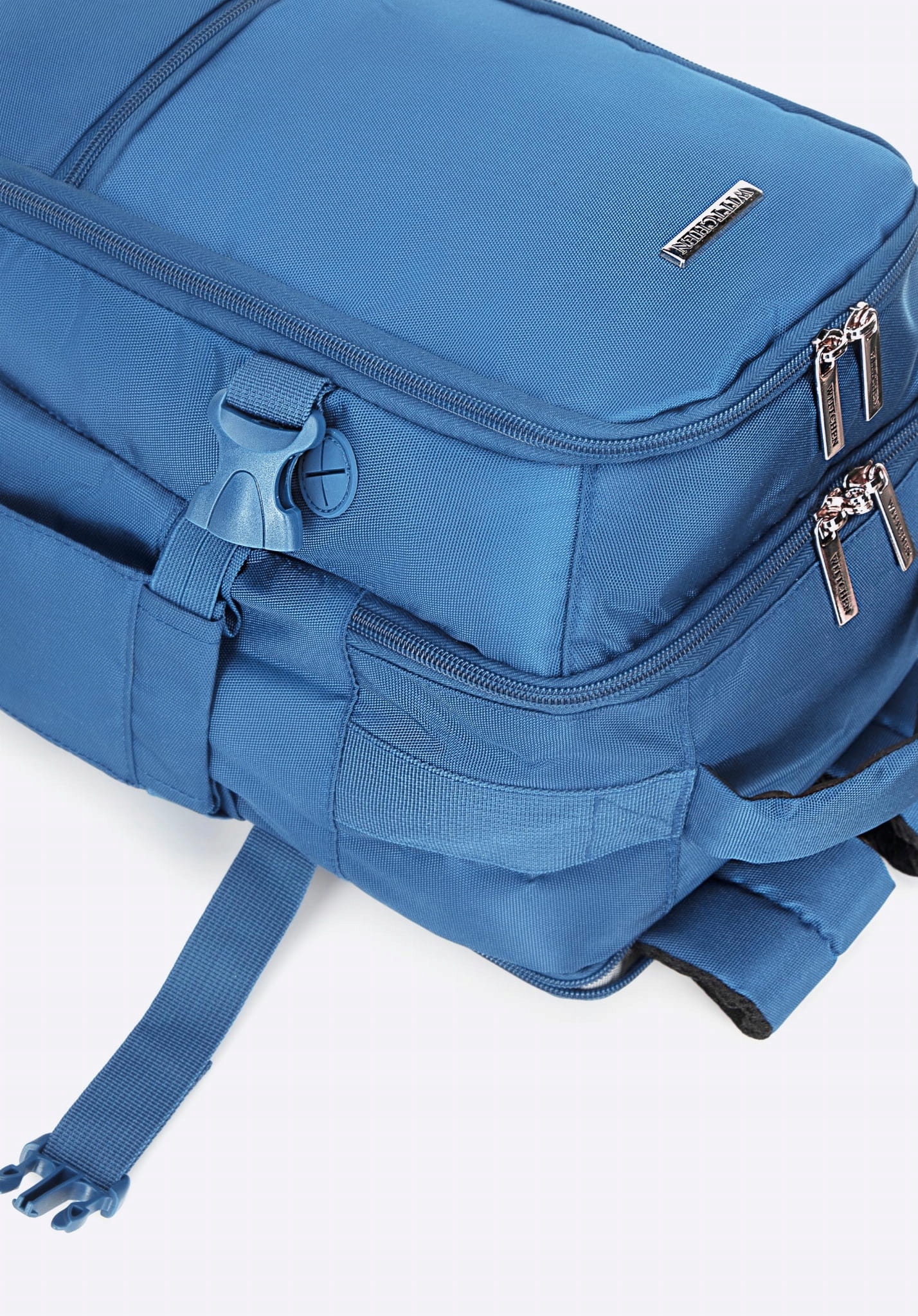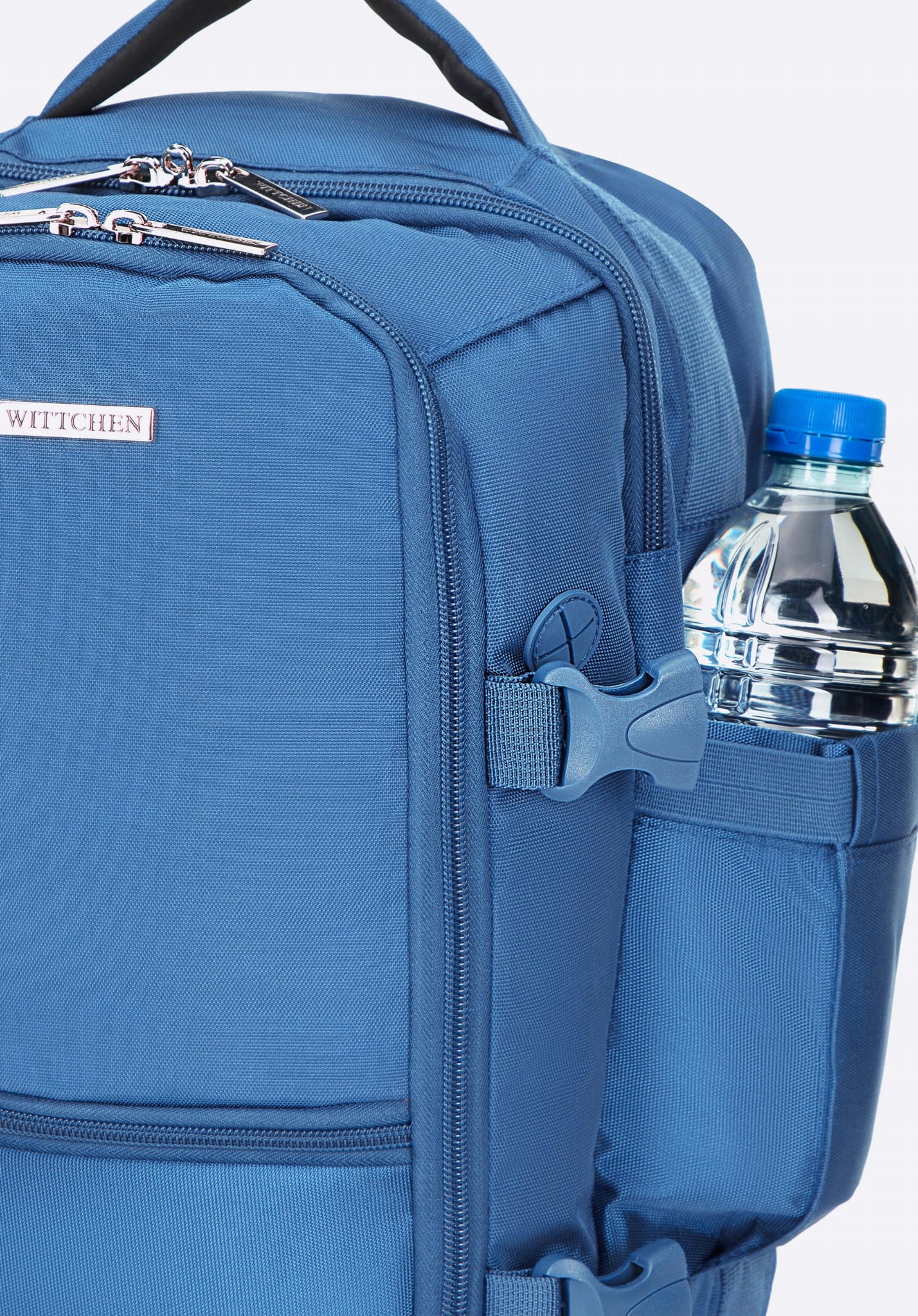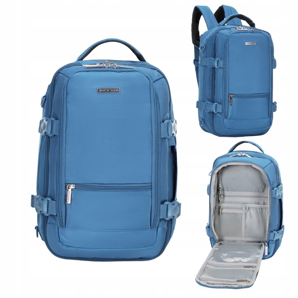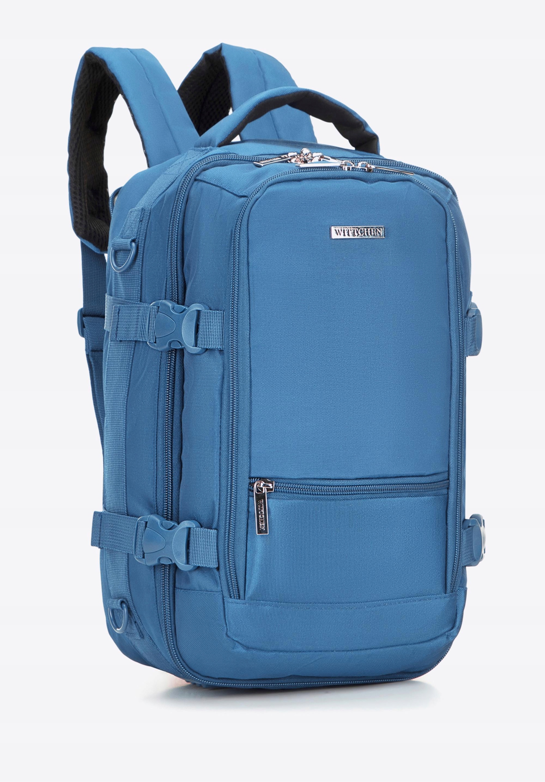 Plecak kabinowy WITTCHEN 29-3P-000-70 (40 × 25 × 20 cm) to doskonałe rozwiązanie dla podróżnych ceniących funkcjonalność i wygodę. Dzięki swoim kompaktowym wymiarom spełnia standardy bagażu podręcznego większości linii lotniczych, w tym Wizz Air, Ryanair, LOT, Lufthansa i EasyJet, co pozwala uniknąć dodatkowych opłat za bagaż. Wykonany z wytrzymałego poliestru w kolorze niebieskim, zapewnia odporność na codzienne użytkowanie, a ergonomiczne szelki i uchwyt na walizkę gwarantują komfort noszenia.