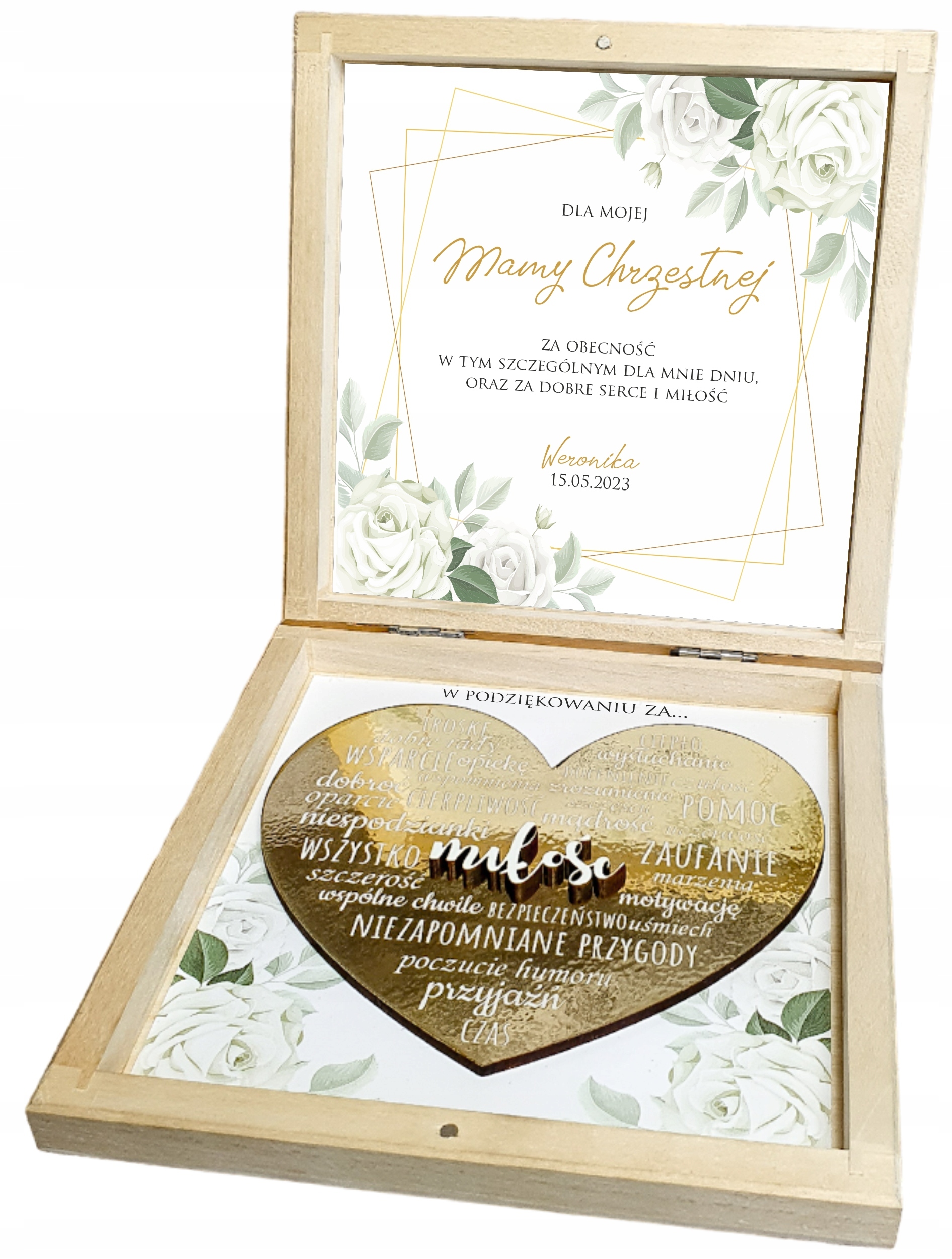 Pudełko jest oryginalnym sposobem podziękowania. Na wieczku znajduje się wysokiej jakości nadruk UV.