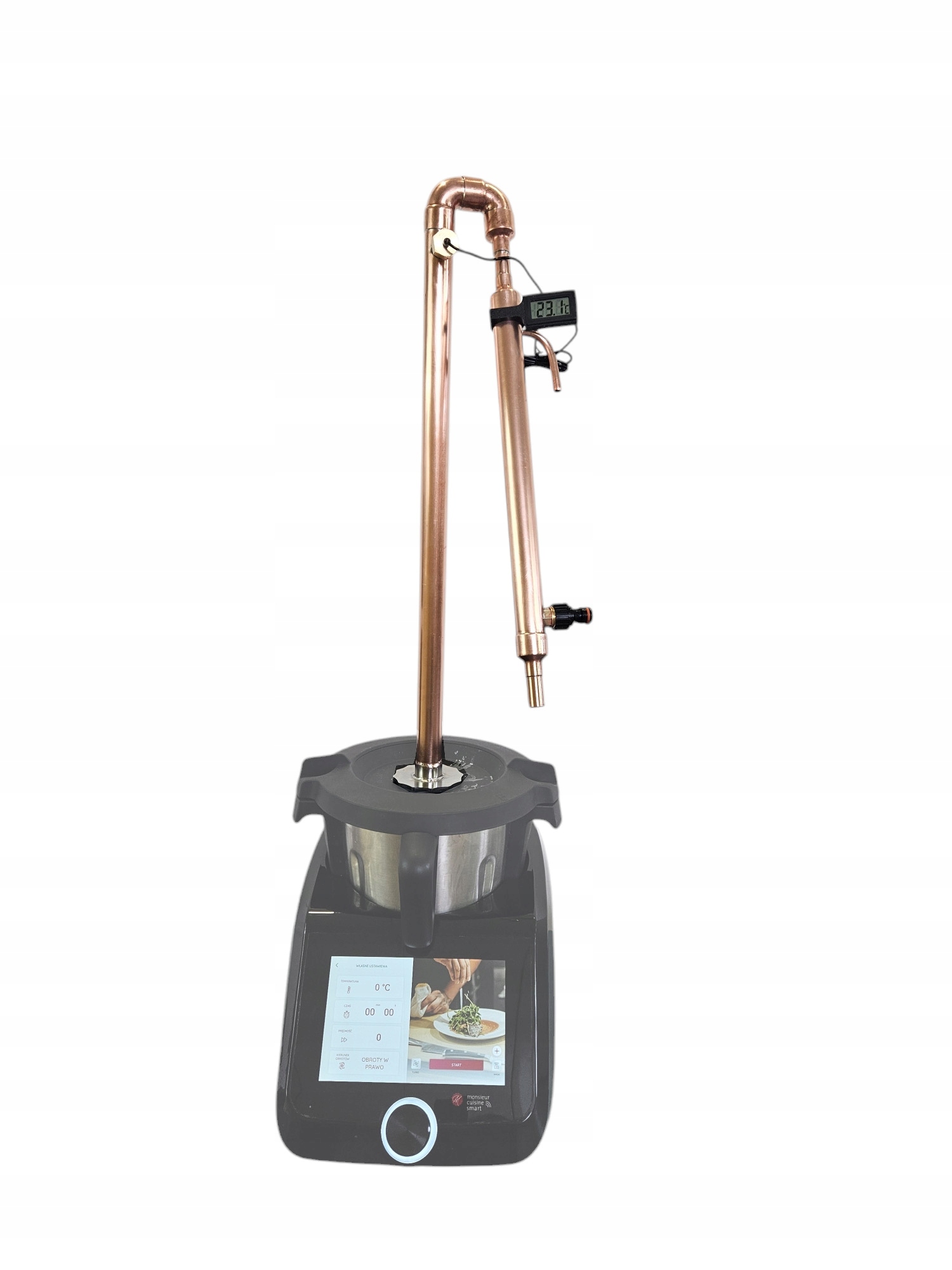 Alembix – miedziany destylator prosty do popularnych robotów kuchennych: Termomixa i Lidlomixa