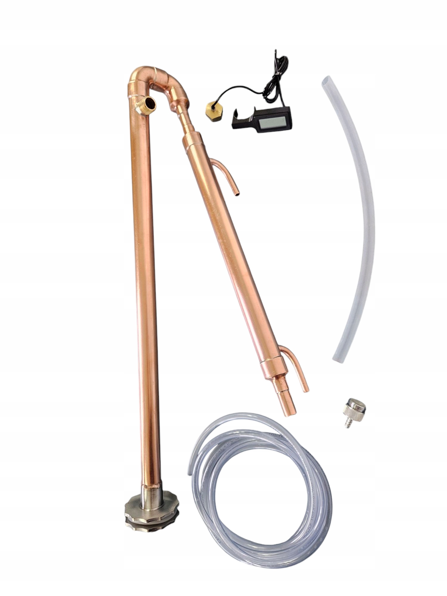 ✅ Elektroniczny termometr LCD – precyzyjny pomiar temperatury na szczycie deflegmatora umożliwia pełną kontrolę nad procesem destylacji.