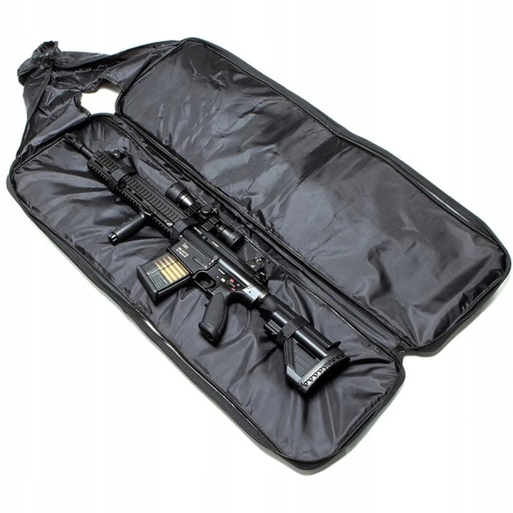 ✅ Pokrowiec wykonany jest z wytrzymałego i wodoodpornego nylonu, a środek dodatkowo wypełniony jest pianką, która zabezpiecza broń przed uderzeniami oraz usztywnia ścianki.