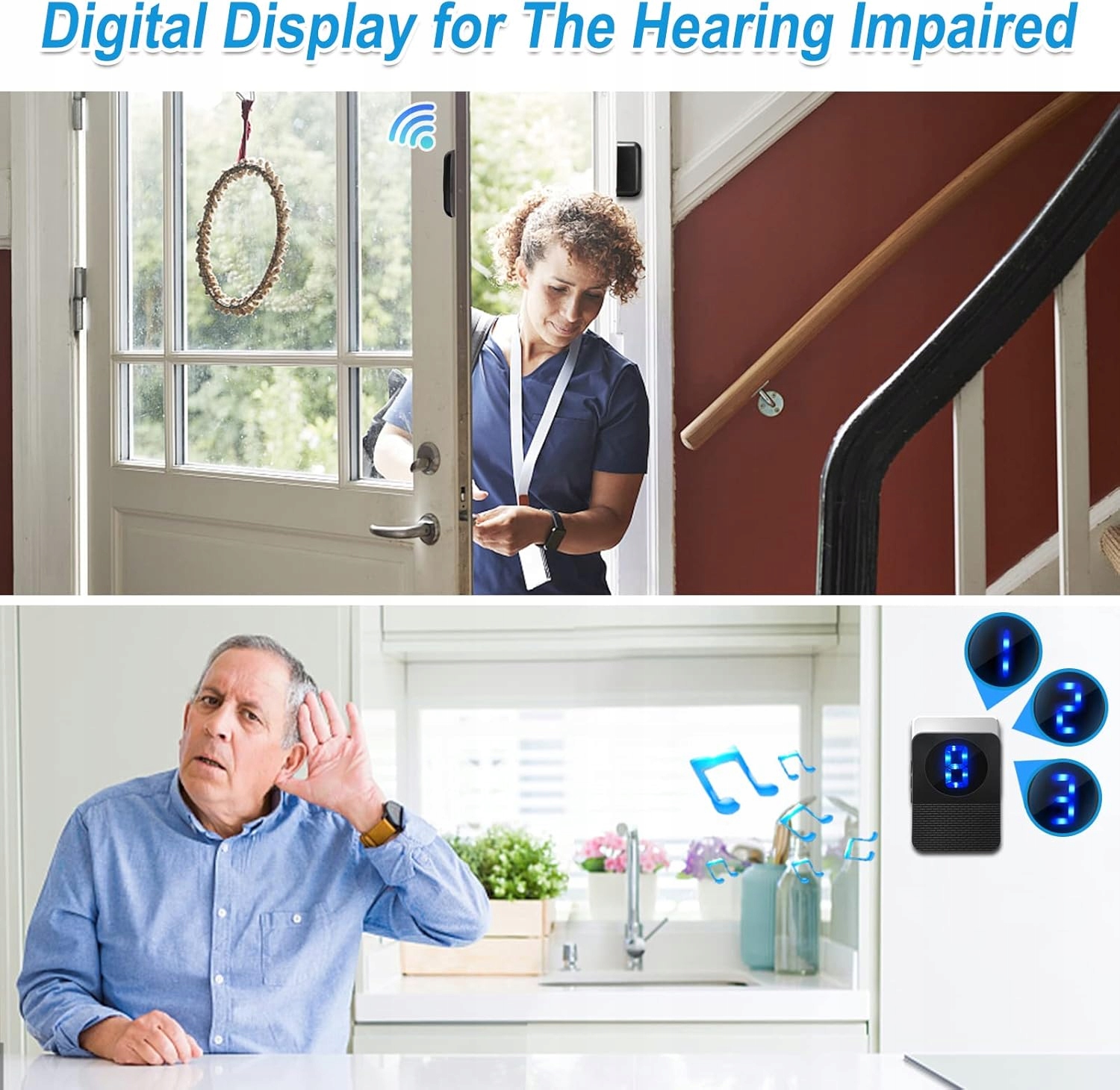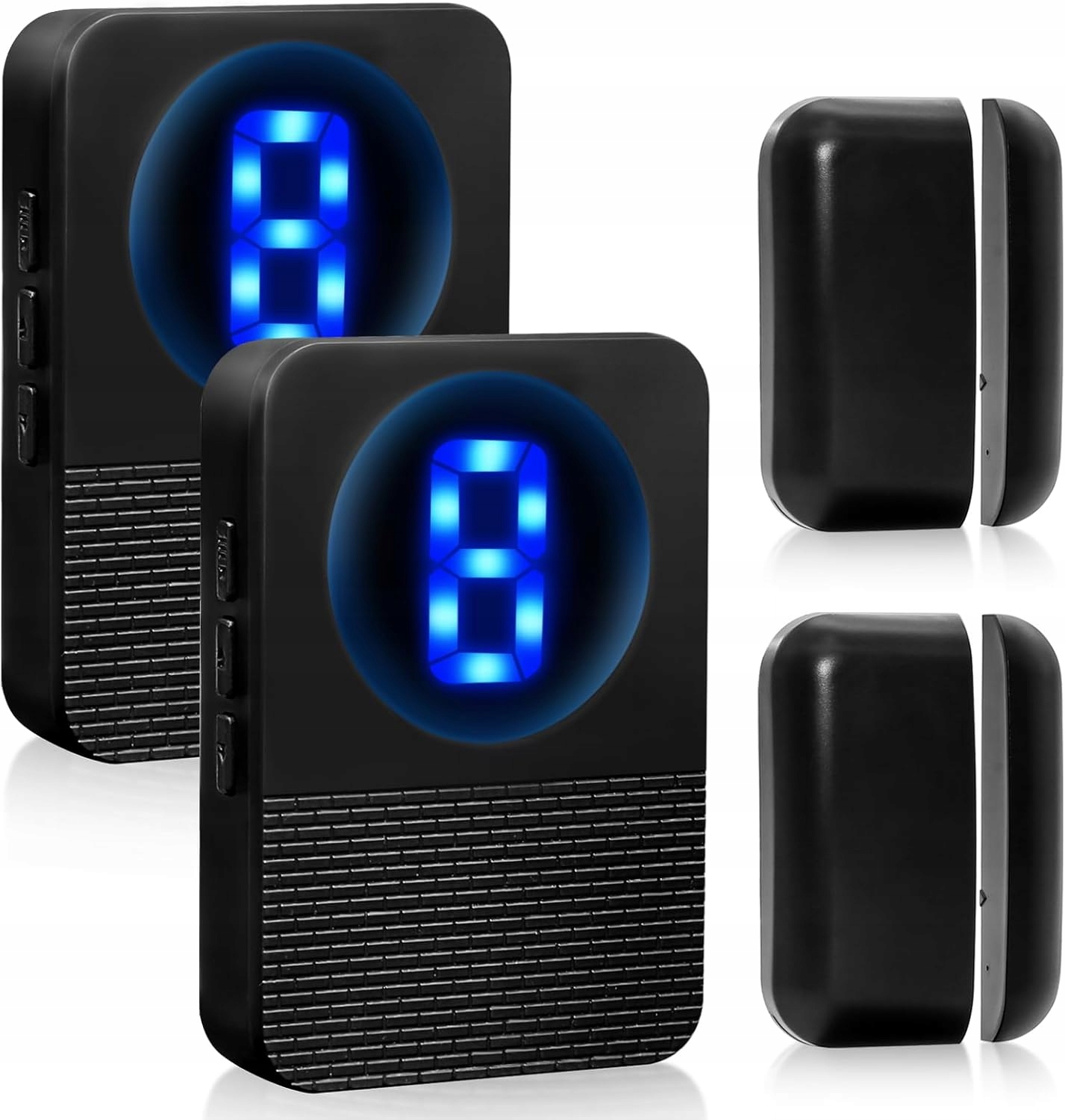 Alarm wejścia do drzwi jest wyposażony w 55 rodzajów dzwonków o różnych stylach do wyboru. Regulacja głośności na 5 poziomach, od cichej do głośnej (0 db do 110 db), nie musisz się martwić, że nie usłyszysz dzwonka. Wskaźnik LED może wyświetlać różne liczby, co ułatwia rozróżnienie, które drzwi są otwarte