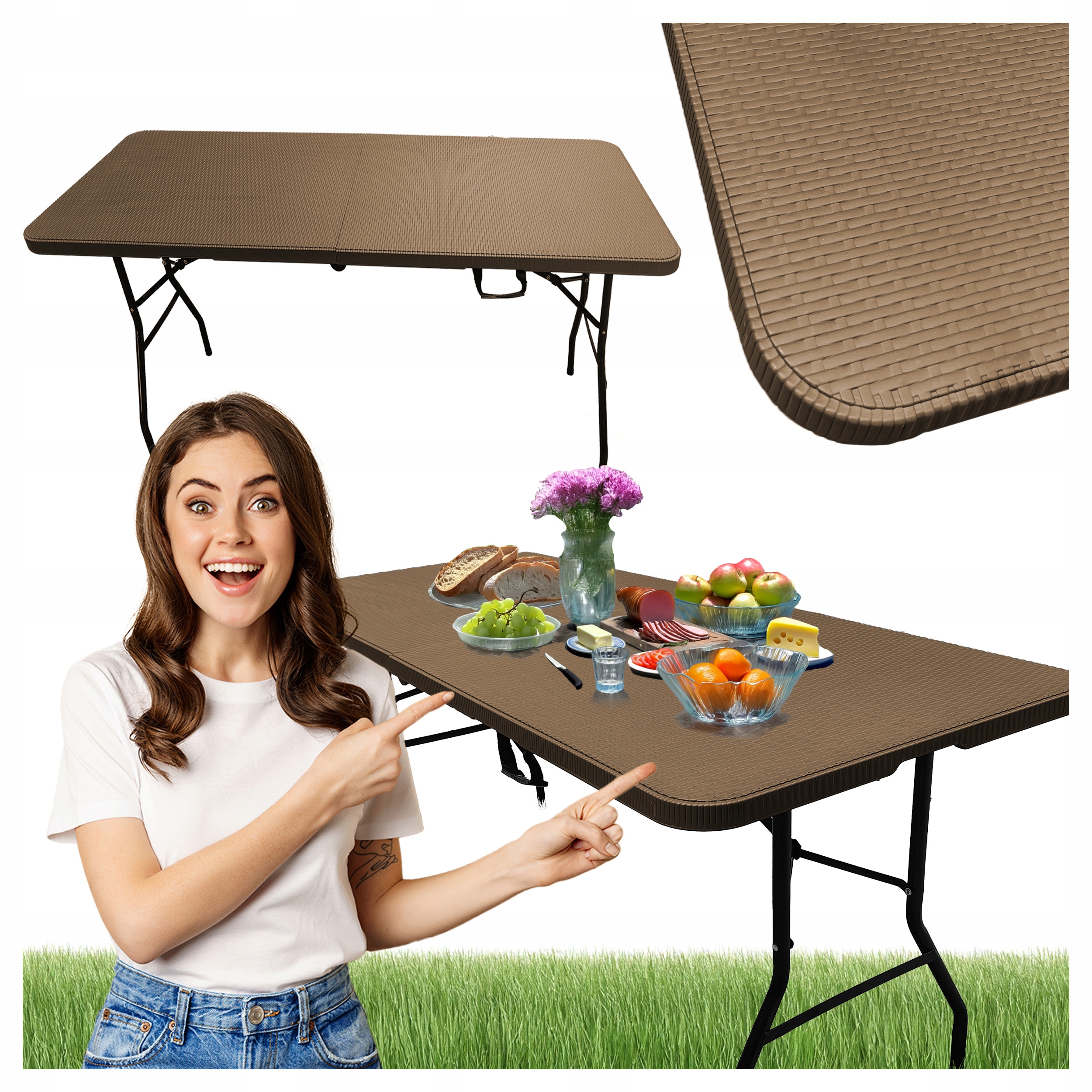 ✅ Składana konstrukcja umożliwia złożenie stołu do formy walizki z wygodną rączką, co ułatwia przenoszenie i przechowywanie.