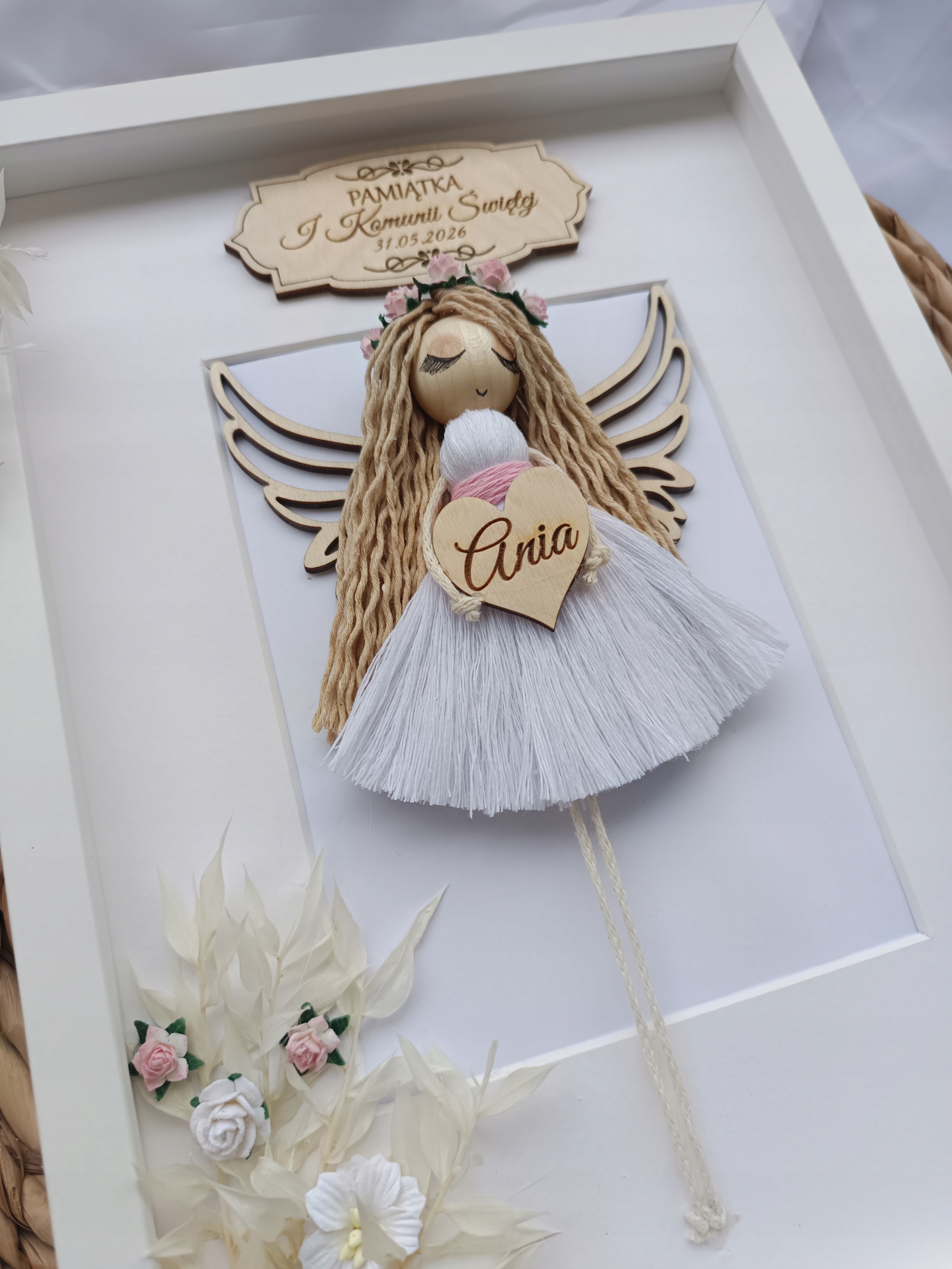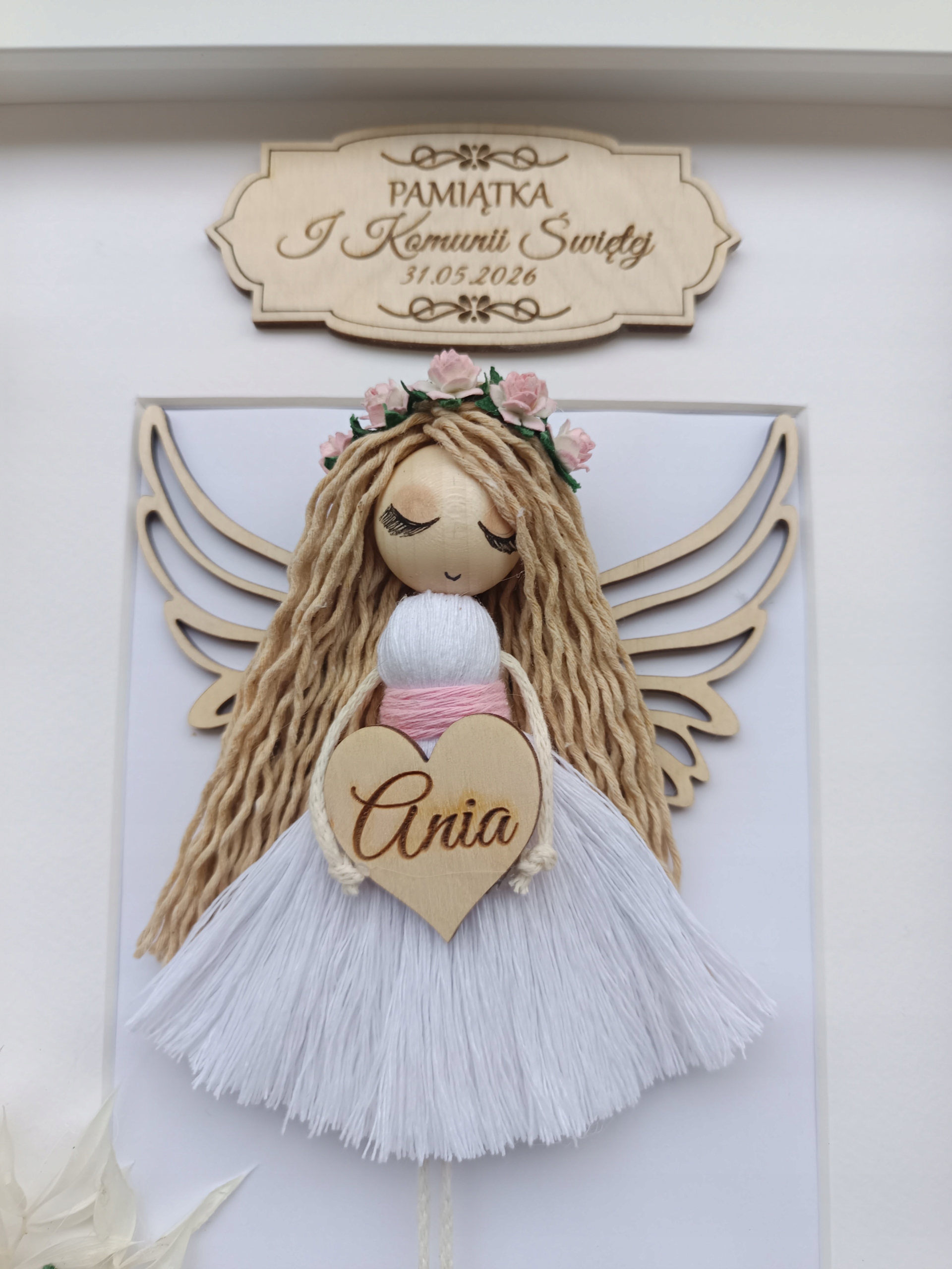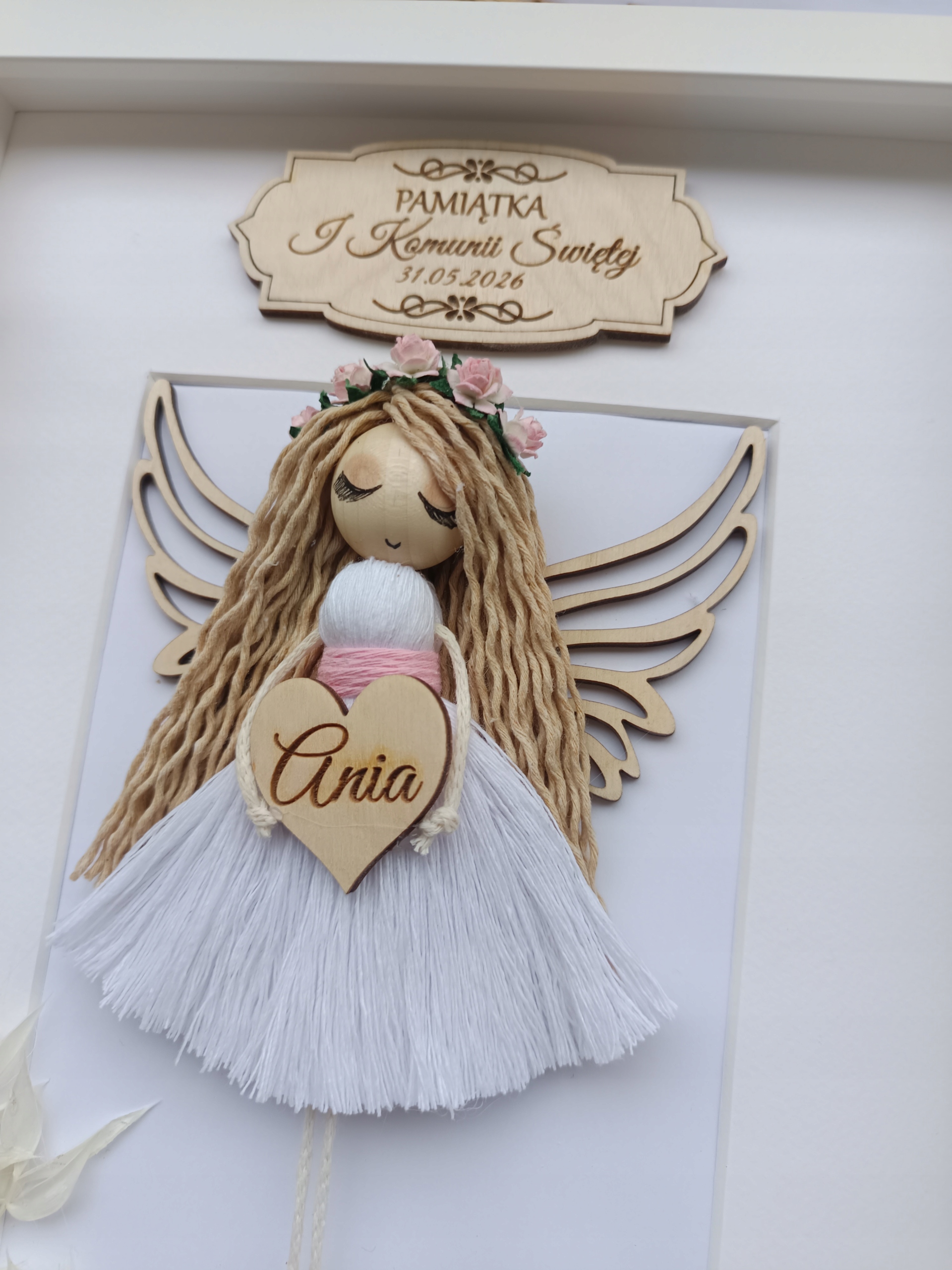 ❤️ Ręcznie wykonany aniołek w formie ramki w rozmiarze 21/30 cm dla dziewczynki
