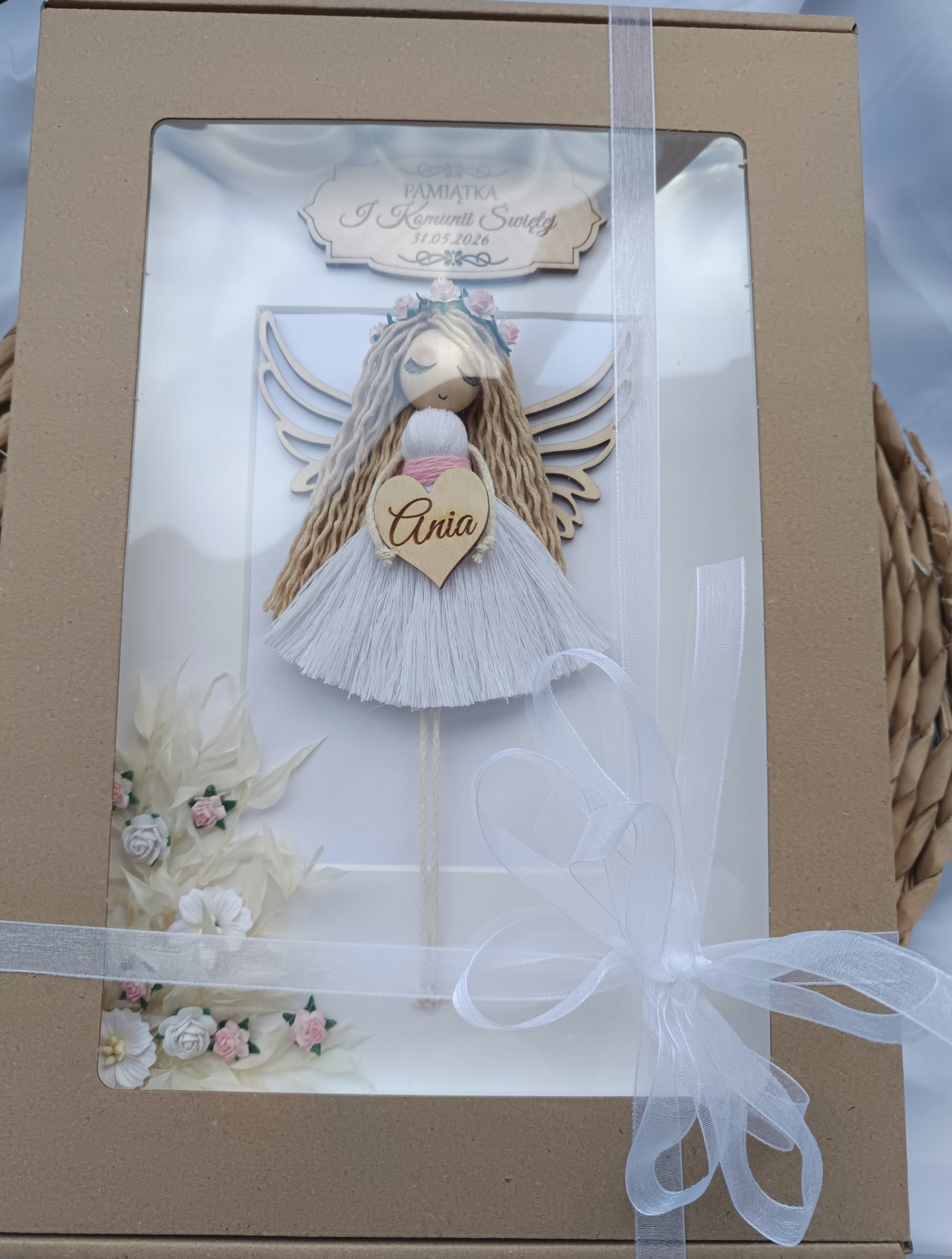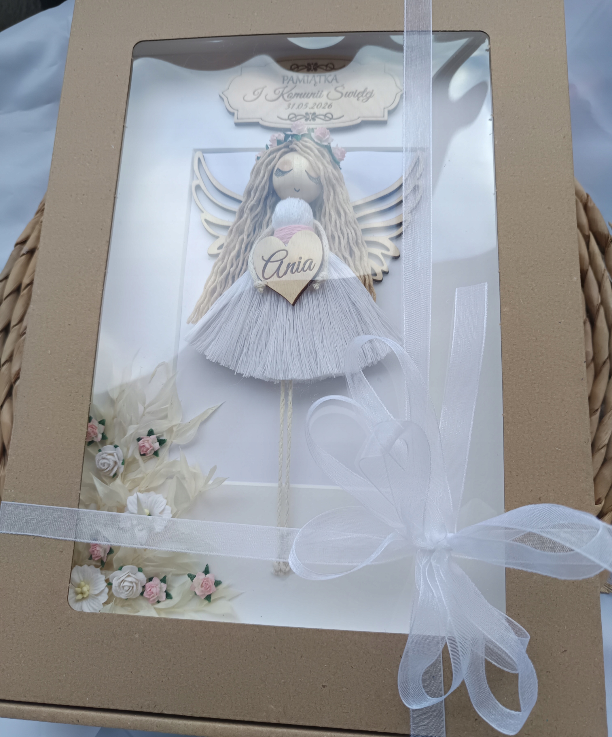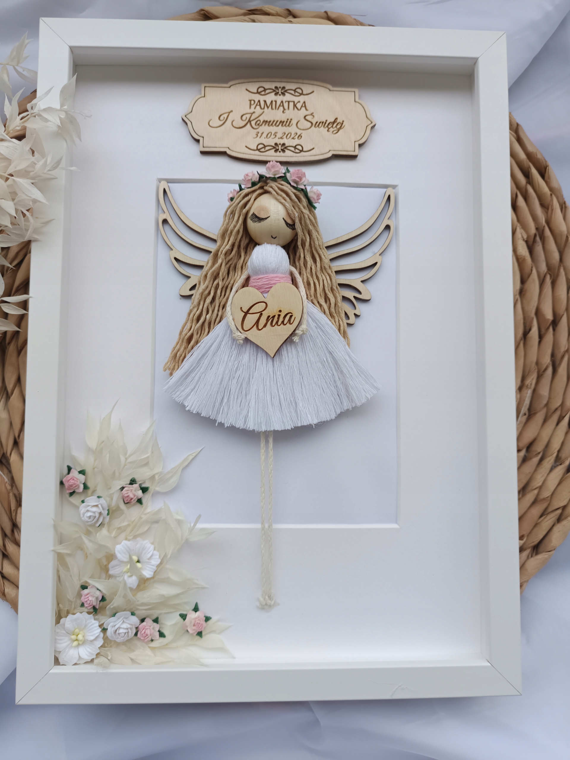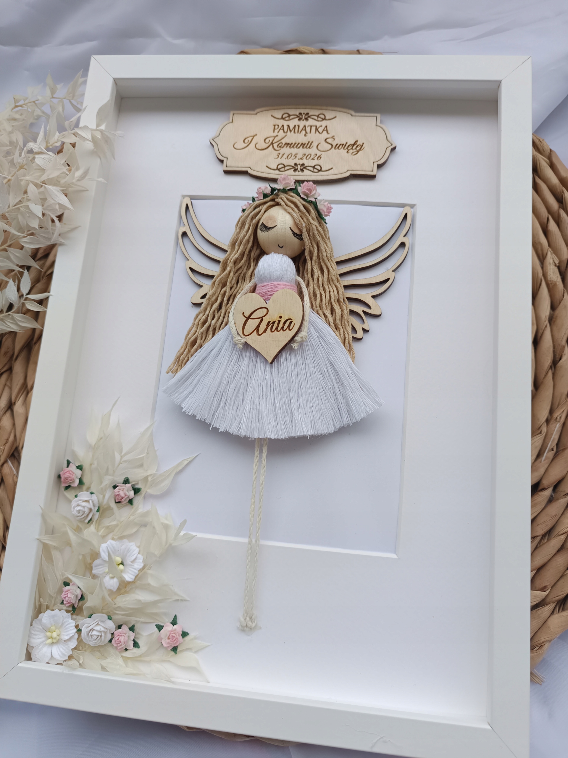 ❤️ Ręcznie wykonany aniołek w formie ramki w rozmiarze 21/30 cm dla dziewczynki