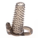 Nakładka na penisa i jądra z wibratorem masującym łechtaczkę. Nakładka erekcyjno-stymulacyjna pokryta została setkami wypustek masujących partnerkę. Żelowa nasadka dodatkowo wyposażona została w boczny wibrator zainstalowany przy wypustce stymulującej łechtaczkę. Genialna nakładka, to gadżet, który wzmocni erekcję, czas trwania stosunku oraz pomoże powstrzymać przedwczesny wytrysk. Tworzywo żelowe jest niesamowicie elastyczne, dopasuje się do każdego rozmiaru penisa.