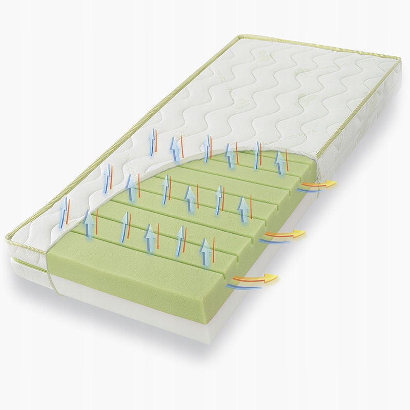 ✔️ znacznie większą w porównaniu z tradycyjną pianką poliuretanową trwałość materaca.