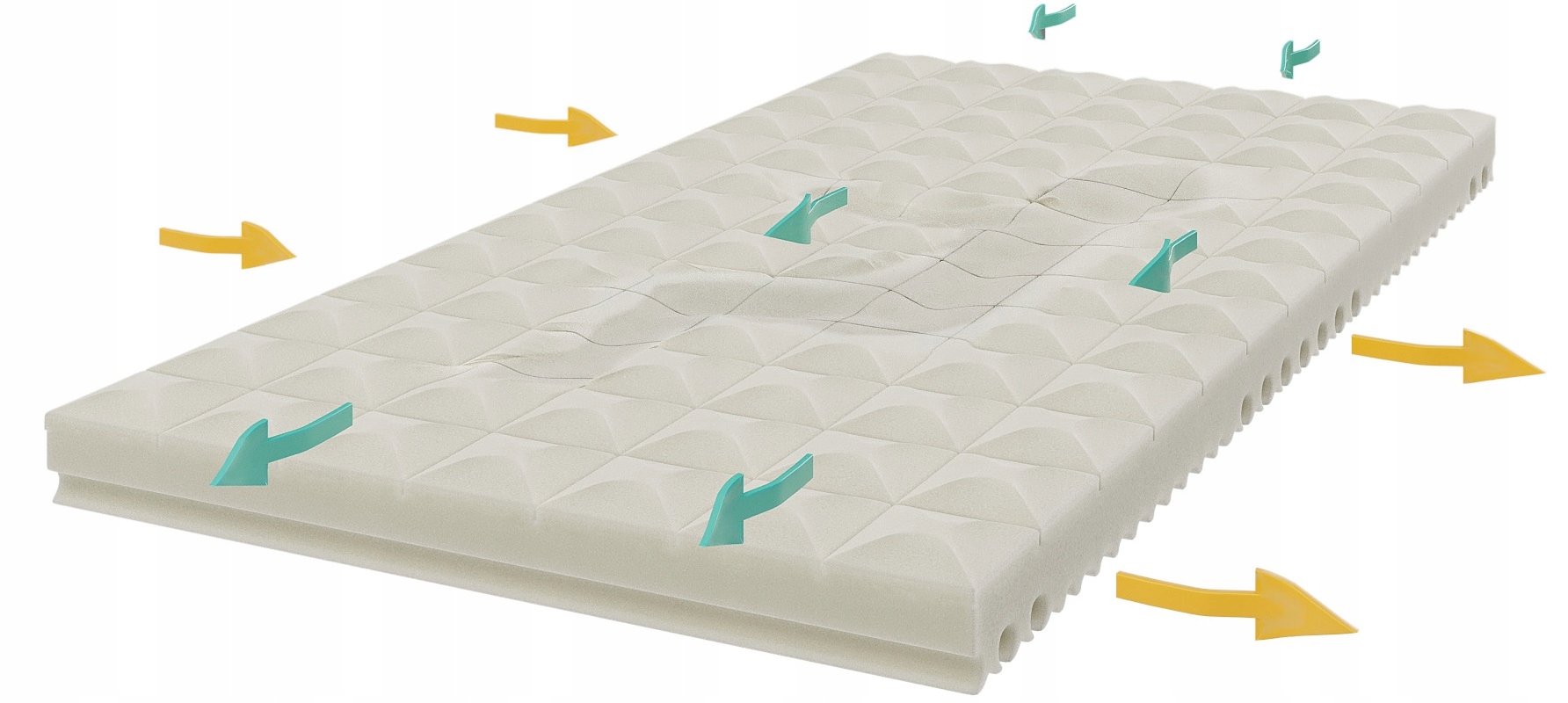 ✅6 stref podparcia i wentylacji – równomiernie rozmieszczone strefy zapewniają optymalne wsparcie dla kręgosłupa oraz swobodny przepływ powietrza, co wpływa na higienę snu i komfort termiczny.