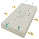 Dzięki unikalnej strukturze, materac pomaga w utrzymaniu optymalnej temperatury ciała dziecka, co sprzyja spokojnemu i bezpiecznemu snu.