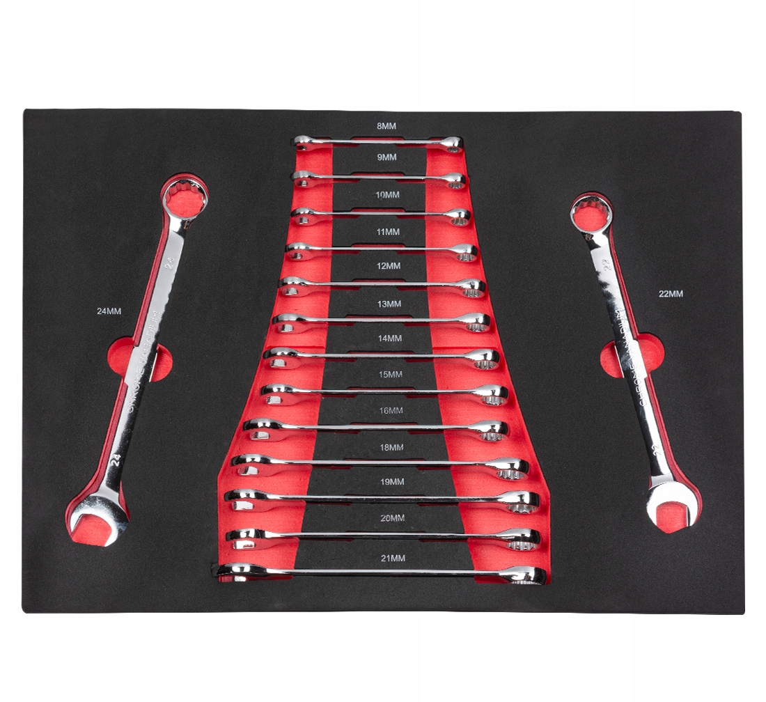 15szt Klucze płasko-oczkowe: 8-9-10-11-12-13-14-15-16-18-19-20-21-22-24 mm