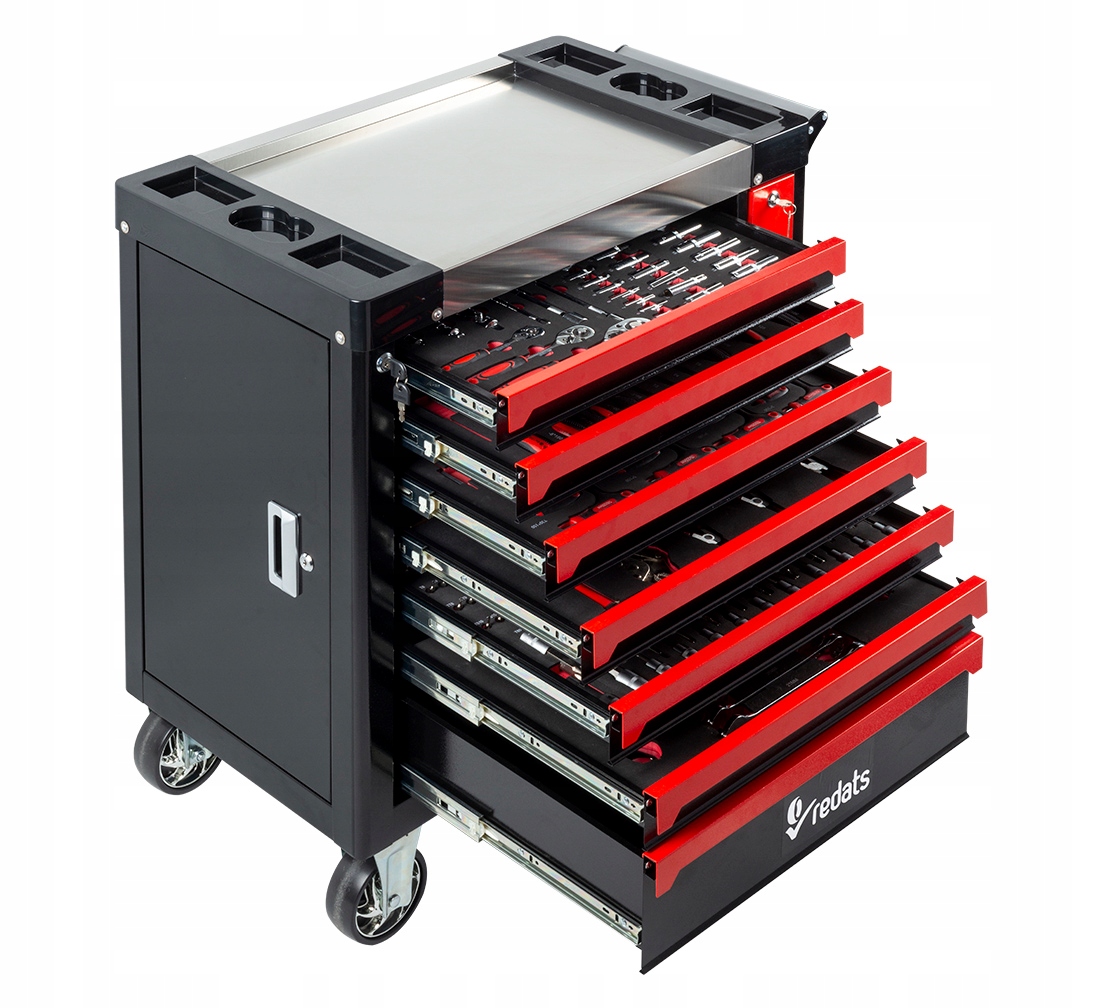 W pełni wyposażony wózek wesprze Cię przy naprawach. Gdy auto zawiśnie na podnośniku, a Tobie brakuje jakiegoś klucza czy przedłużki. Mając wózek ustawiony koło podnośnika, masz wszystko pod ręką. A w tym wózku masz niemalże pełny zestaw rzeczy, które mogą się przydać