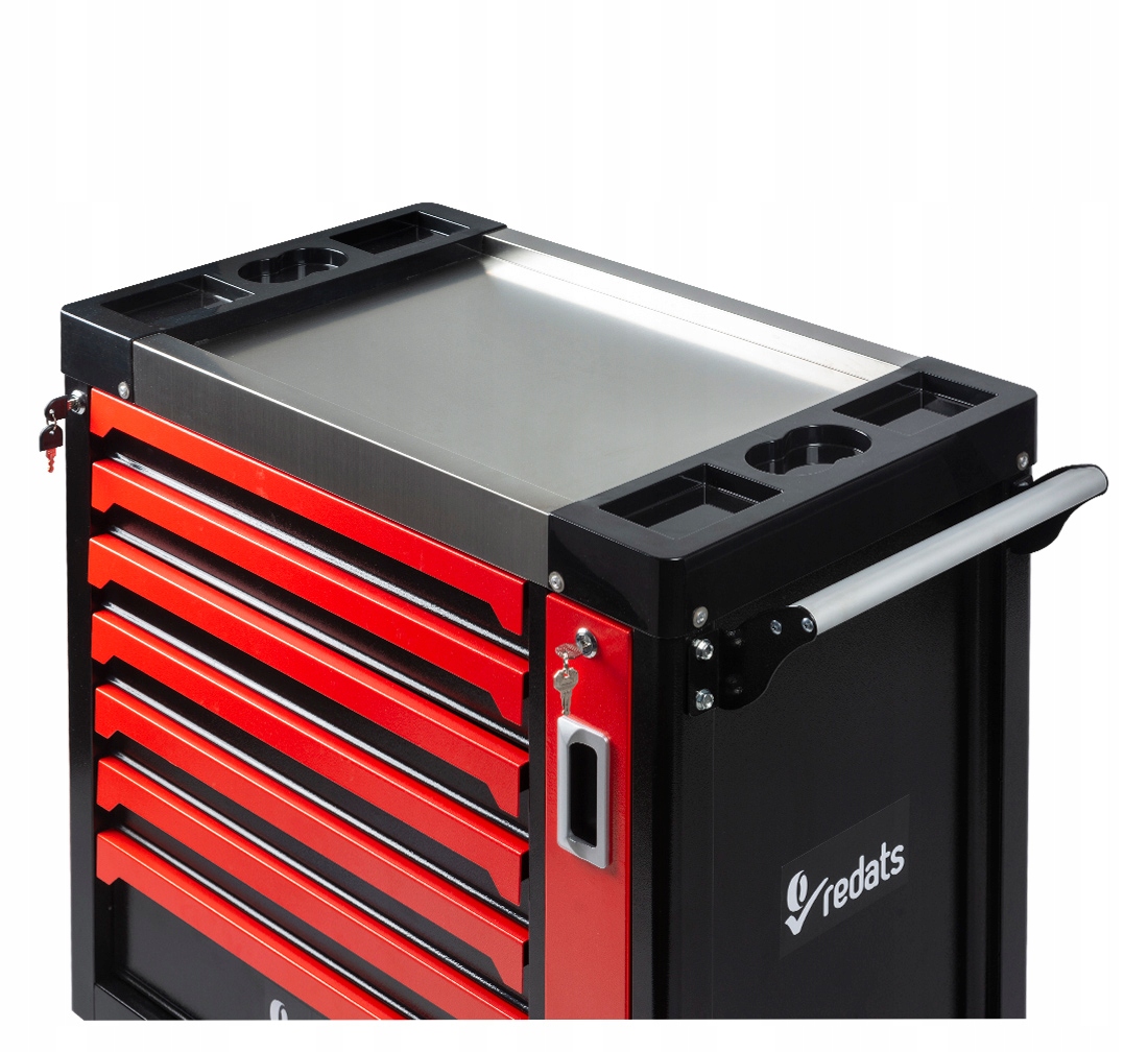Szafka wyposażona jest w centralny zamek, a szuflady blokujesz kluczem. Jedno przekręcenie i Twoje narzędzia są bezpieczne!