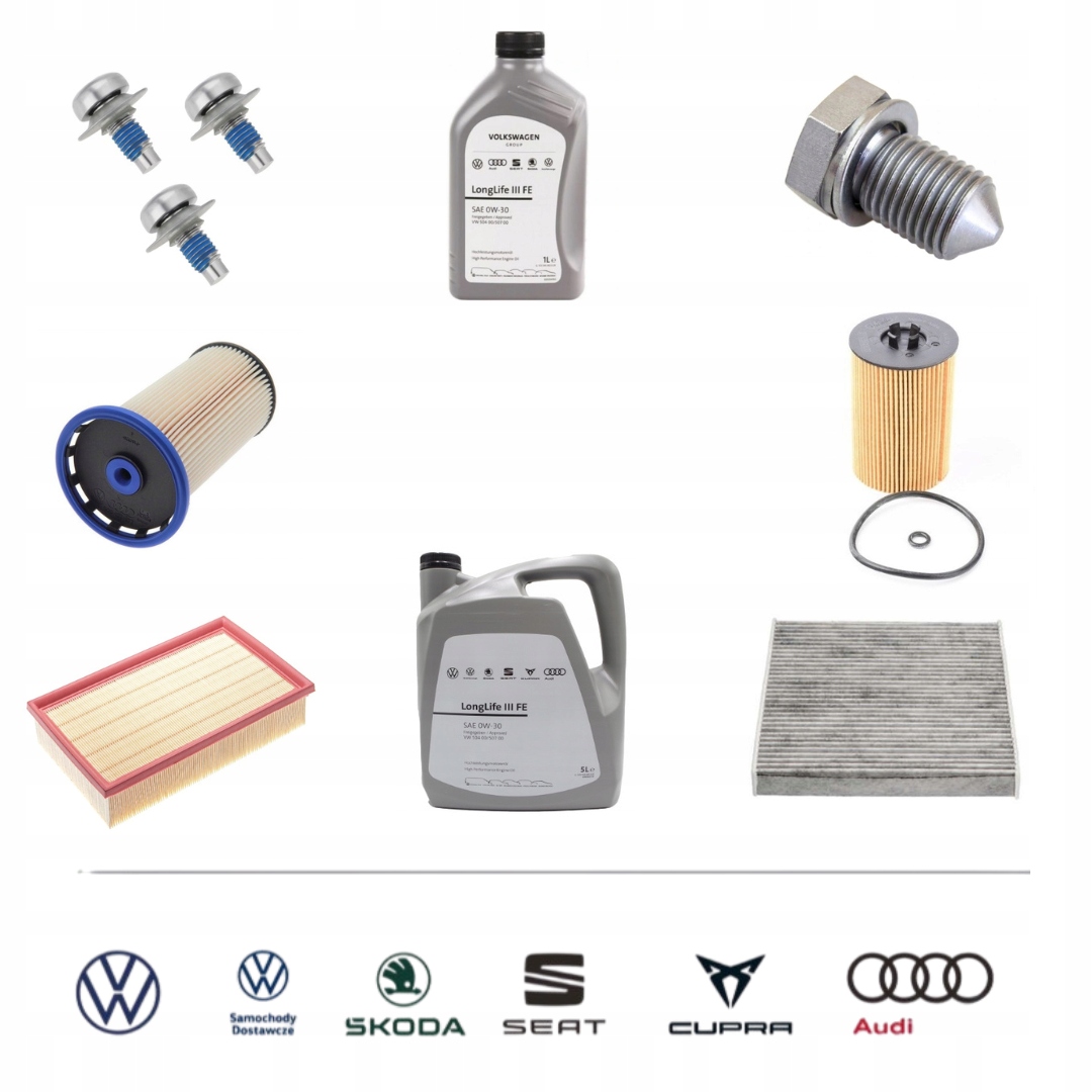 Nowy oryginalny pakiet przeglądowy filtrów wraz z olejem silnikowym Seat Leon