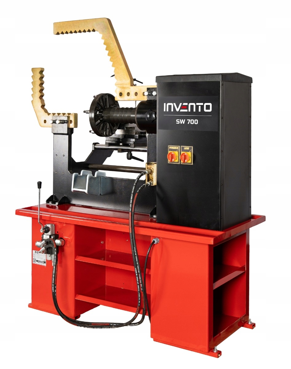 Maszyna Invento SW700 z tokarką przeznaczona jest do profesjonalnego prostowania obręczy stalowych i aluminiowych o średnicy od 10” do 24” w wersji z 3,4 lub 5 otworami o różnej średnicy podziału śrub.