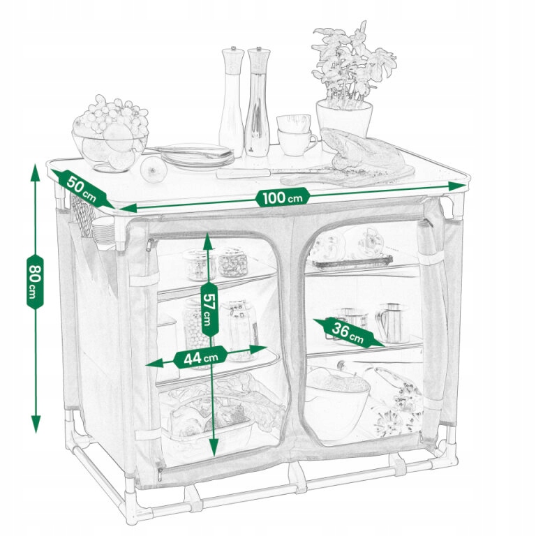 ✅ Niewątpliwą zaletą jest możliwość złożenia szafki i schowania w torbę, co skutkuje bezproblemowym transportem i przechowywaniem poza sezonem.