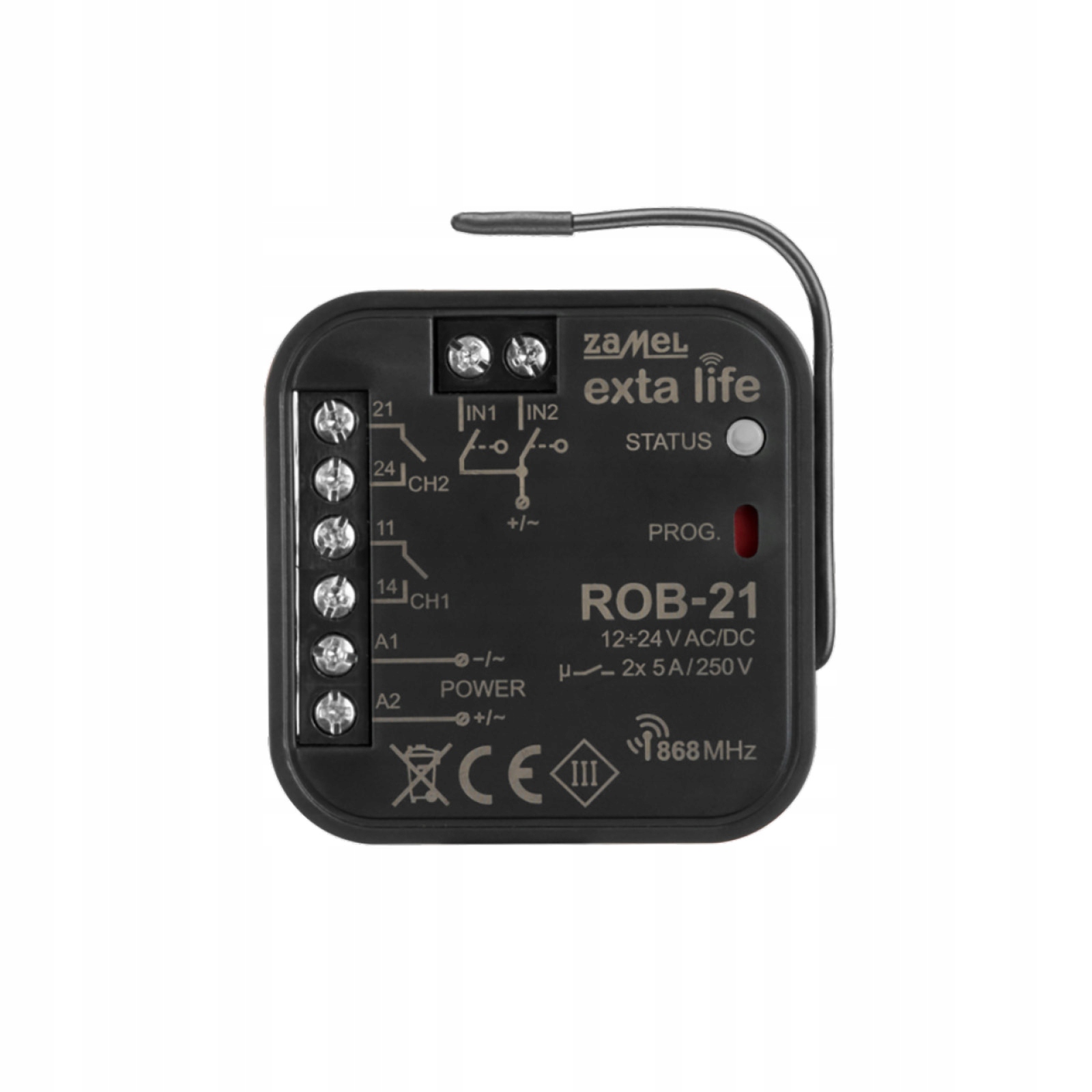 Zamel ROB-21/12-24V to dwukanałowy odbiornik radiowy z serii EXTA LIFE, przeznaczony do sterowania bramami wjazdowymi, garażowymi oraz elektrozaczepami w furtkach. Urządzenie umożliwia zdalne zarządzanie za pomocą pilotów oraz aplikacji mobilnej EXTA LIFE, oferując funkcję pełnego otwarcia lub uchylenia bramy. Dzięki dwukierunkowej komunikacji i możliwości podłączenia czujników krańcowych, użytkownik ma wgląd w aktualny stan bramy. Szeroki zakres napięcia zasilającego (12–24 V AC/DC) zapewnia kompatybilność z większością sterowników bram dostępnych na rynku.