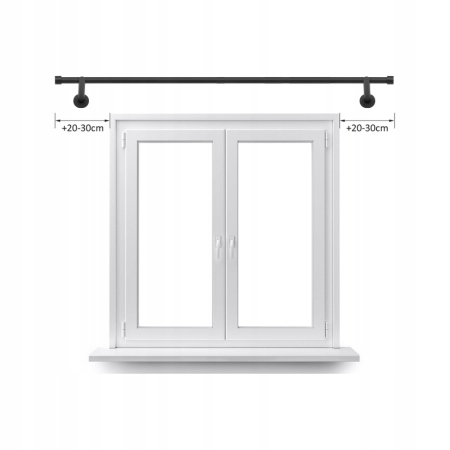 Zmierz szerokość wnęki okiennej i dodaj 40-60 cm (po 20-30 cm na każdą stronę). Wsporniki powinny być zamontowane od wnęki okna o około 15 cm. Podany w aukcji rozmiar karnisza jest długością samej rurki. Zakończenie LUNA dodatkowo przedłuża rurkę o 0,5 cm z każdej strony .