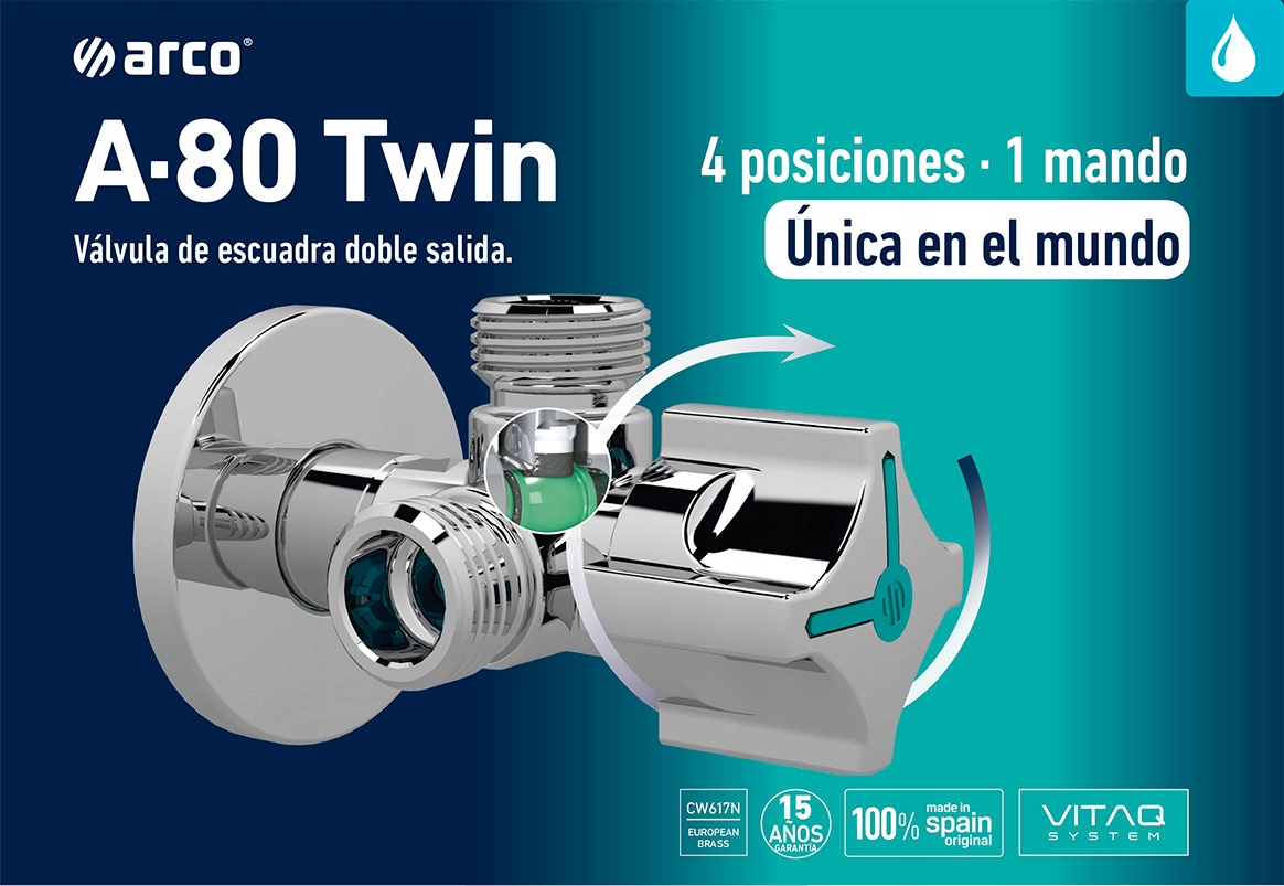 Wysokiej jakości zaworek idealnie nadający się do podłączenia dwóch urządzeń w jednym punkcie. Obydwa urządzenia są zamykane niezależnie po wybraniu odpowiedniego położenia pokrętła.Odpowiednie ustawienie pokrętła umożliwia otwarcie lub zamknięcie jednego lub obydwóch wyjść. Dzięki opatentowanemu systemowi "klik" pokrętło ustawia się w czterech położeniach, precyzyjnie otwierając lub zamykając odpowiedni przelot. Element zamykający i otwierający przepływ wody wykonany jest w technologi ANTI-CAL chroniącej przed skutkami zarastania kamieniem dzięki czemu zdecydowanie wydłuża się niezawodna praca zaworu. Dodatkową zaletą zaworu jest metalowe pokrętło.