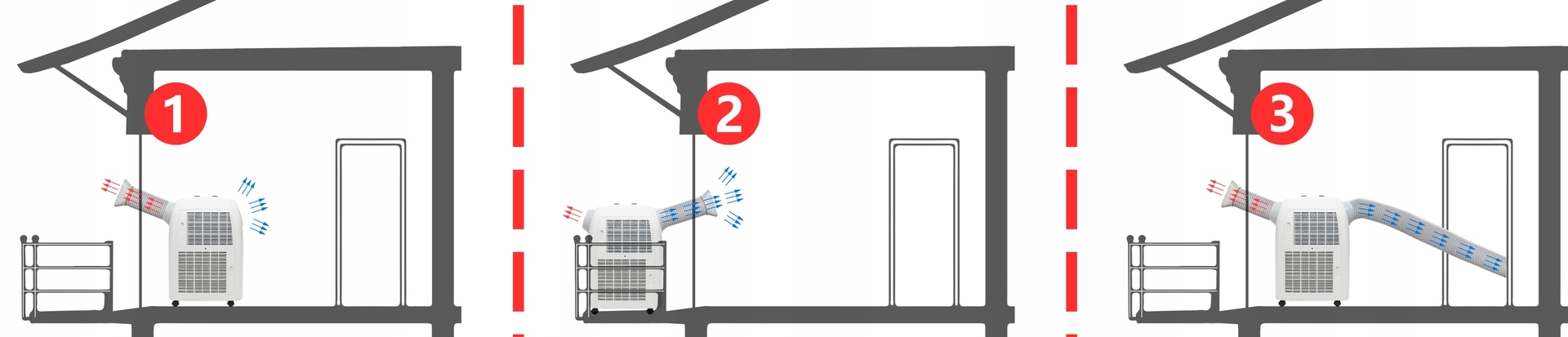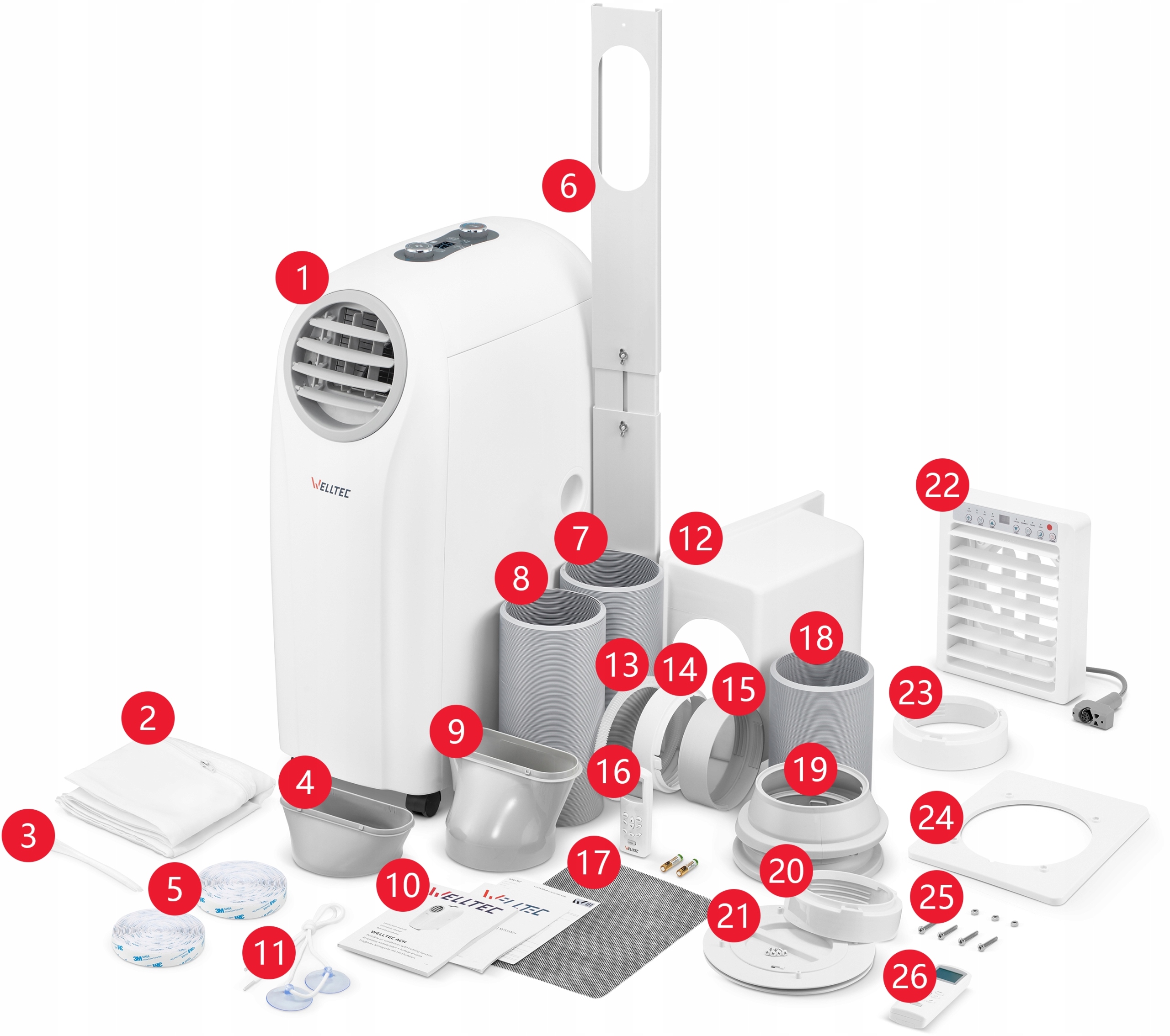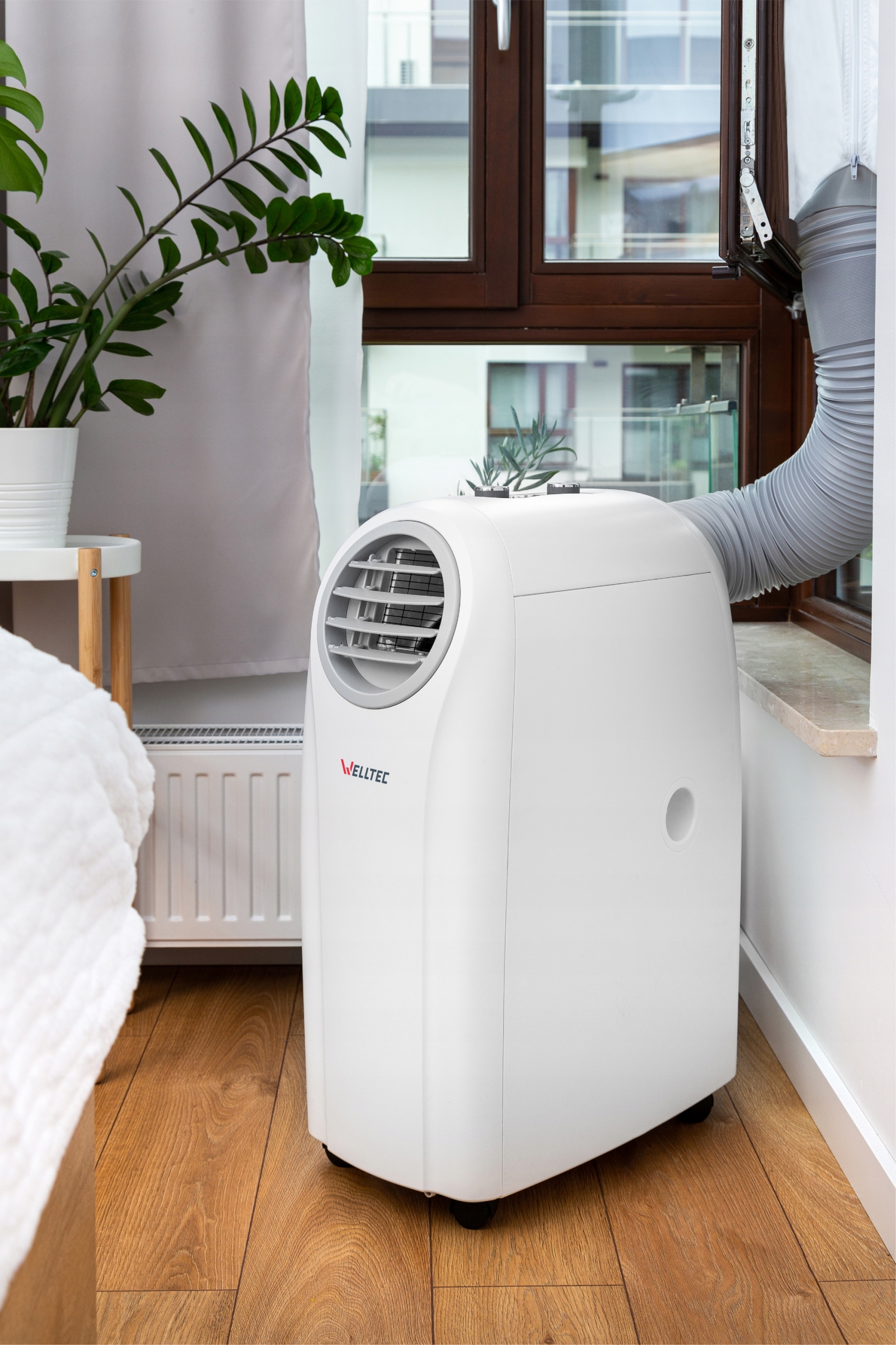✅ Klimatyzator Welltec ACH1414PRO nie wymaga montażu. Dołączone akcesoria pozwalają na ustawienie urządzenia na kilka różnych sposobów. Elastyczne rury o długości 150 i 200 cm, które doprowadzają i odprowadzają powietrze mogą być zamocowane do okna dowolnego typu za pomocą uszczelki okiennej WS400W+ Dual znajdującej się w zestawie. Taki układ gwarantuje wysoką wydajność klimatyzatora, ponieważ gorące powietrze z zewnątrz nie będzie przedostawać się do środka pomieszczenia. Uszczelka okienna pasuje do wszystkich okien i drzwi, których suma trzech boków nie przekracza 400 cm. Prócz ochrony przed gorącym powietrzem chroni również pomieszczenie przed deszczem oraz wszelkimi komarami lub insektami.