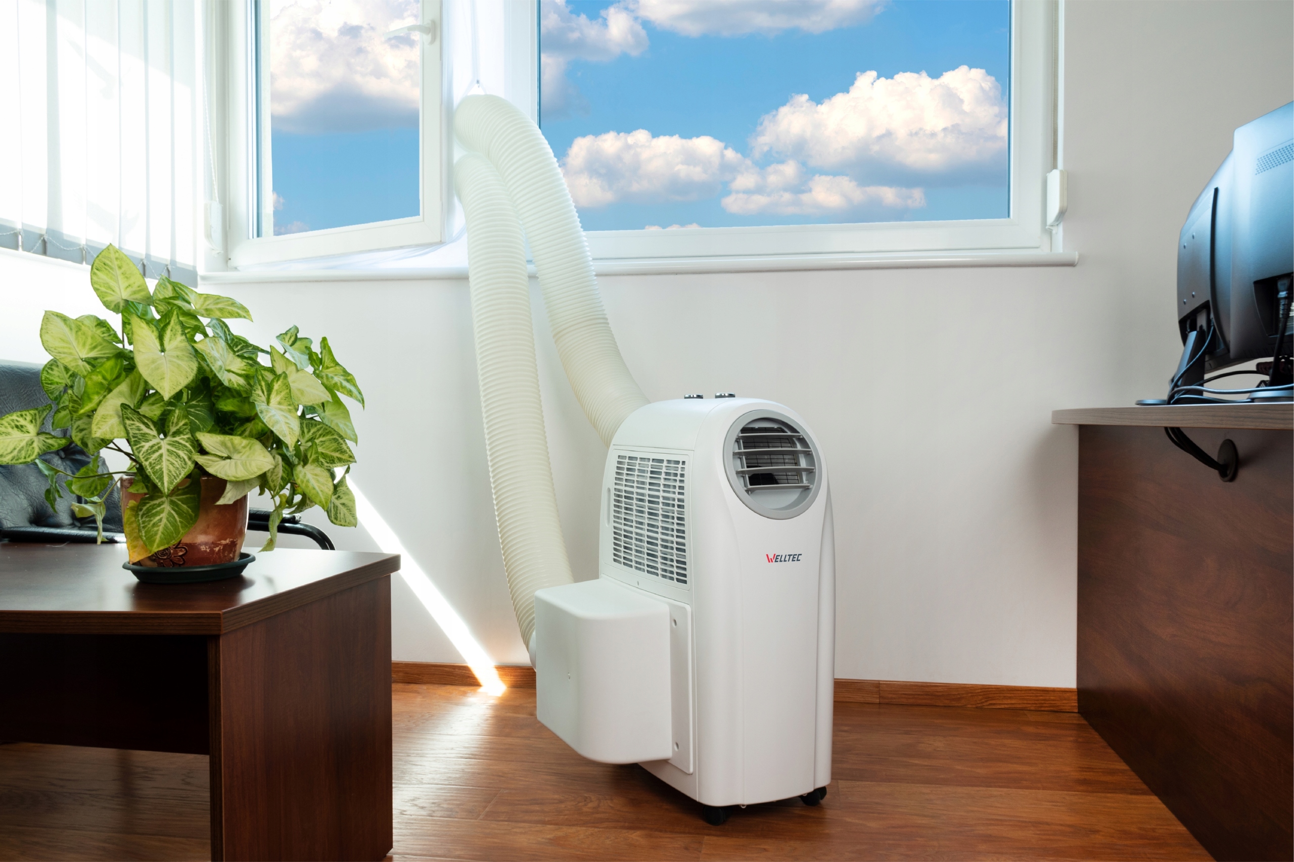 ✅ W przypadku okien przesuwanych w bok lub w górę jedną z rur można zamocować za pomocą znajdującej się w zestawie rozsuwanej listwy okiennej. Zapewnia ona szybki i skuteczny montaż we wszystkich oknach przesuwnych o szerokości od 53 do 154 cm. Klimatyzator Welltec ACH1414PRO może pracować w trybie spot cooler z dwiema rurami. W takim trybie jedna rura odprowadza a druga doprowadza powietrze do wybranego miejsca. Jest to szczególnie przydatne w zakładach przemysłowych, restauracjach, lokalach usługowych i wszędzie tam, gdzie niektóre miejsca są znacznie bardziej nagrzane niż inne. Maksymalnie każda z rur do powietrza w urządzeniu może mieć 400 cm długości.