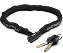 Łańcuch rowerowy – klasyka w zabezpieczeniu rowerów. Łańcuch z utwardzonych ogniw 8 mm, o okrągłym przekroju, w rękawie ochronnym z materiału. Zapięcie rowerowe CONTRA 1200/8V to hartowany łańcuch o długości 120 cm wykonany ze wzmacnianej stali. Zamek Gerda posiada specjalną zatyczkę otworu klucza, która chroni przed pyłem, piaskiem, błotem oraz wszelkimi innymi zabrudzeniami. Zamek jest powleczony bezpieczną powłoką z tworzywa sztucznego, która chroni ramę przed zarysowaniem i amortyzuje przypadkowe uderzenia. Do zestawu dołączony jest wygodny klucz symetryczny. Takie rozwiązanie technologiczne pozwoli z łatwością otworzyć zamek w każdej pozycji, zapewniając wygodę użytkowania nawet w ciemności.
