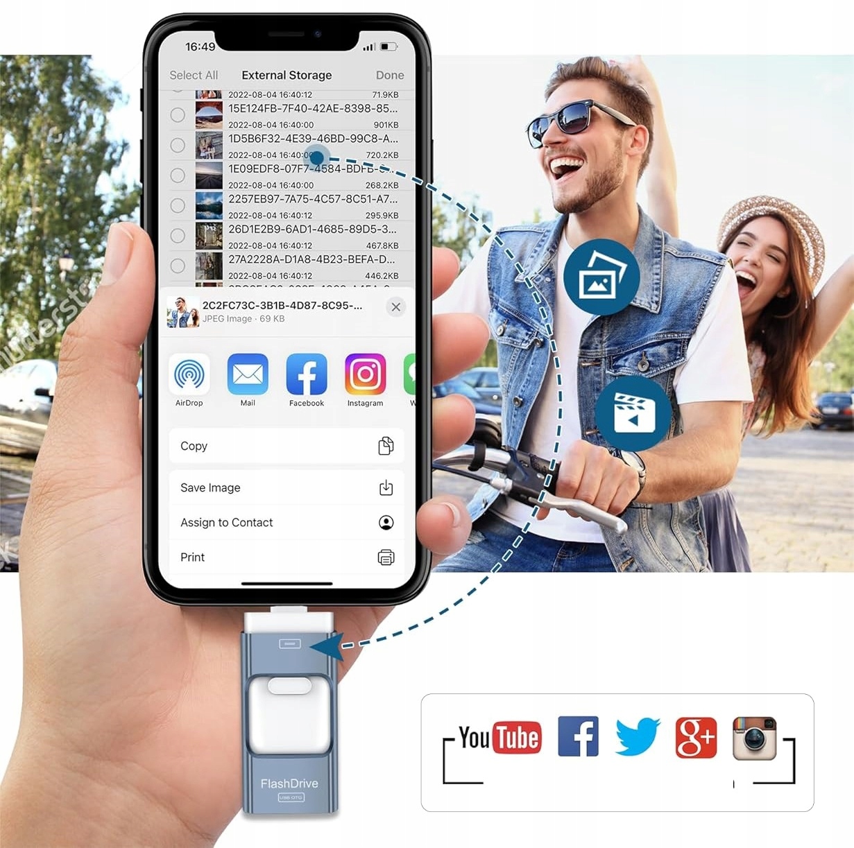 DYSK FLASH USB ZARMST 247 GB DO IPHONE'A I ANDROIDA PAMIĘĆ ZEWNĘTRZNA 4 W 1