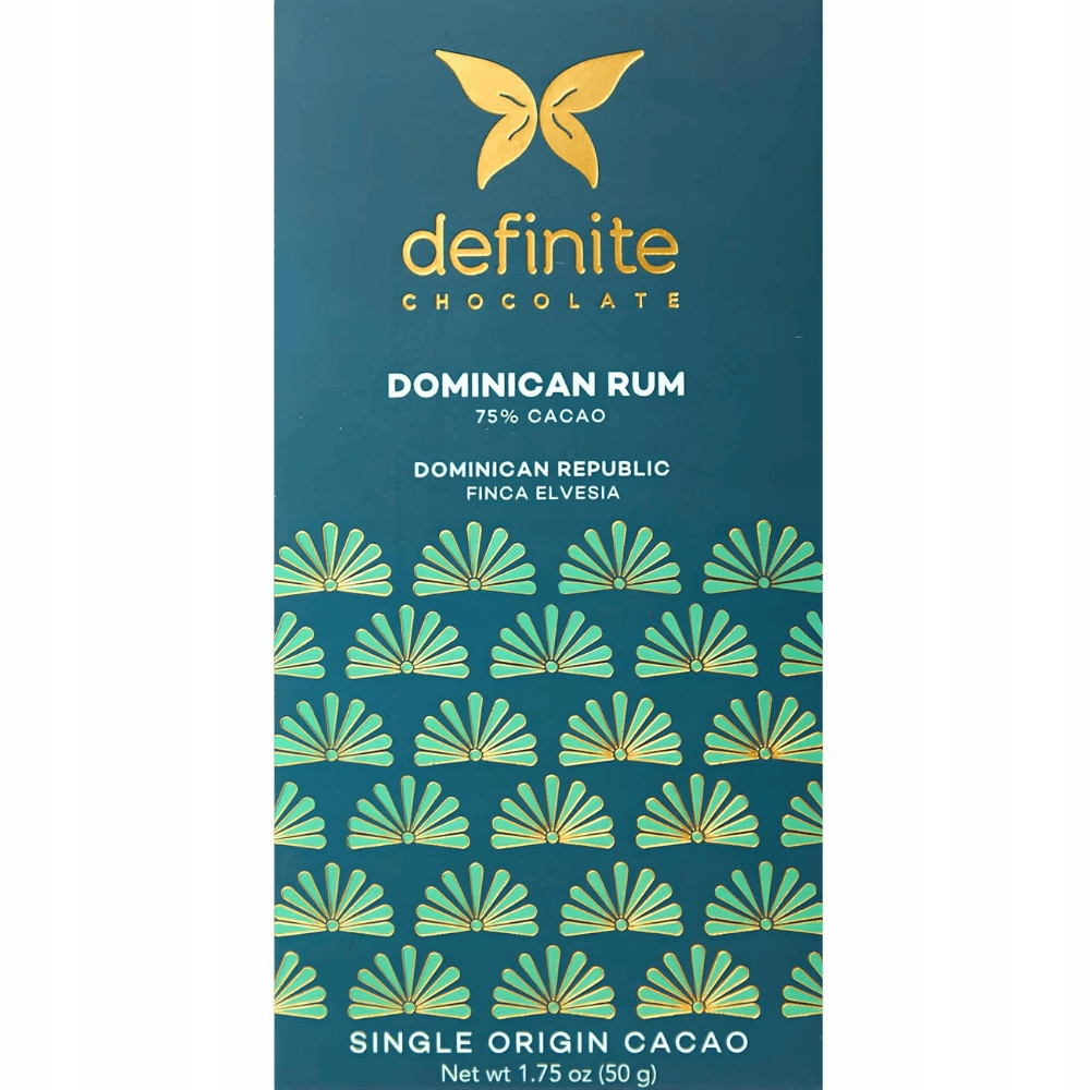 Poznaj Dominican Rum 75% Finca Elvesia - to tabliczka czekolady z manufaktury Definite Chocolate w Santo Domingo na Dominikanie, zrobionej z ziaren kakao nasyconych lokalnym rumem Brugal. Smak tej czekolady charakteryzuje się nutami suszonych owoców i melasy.
