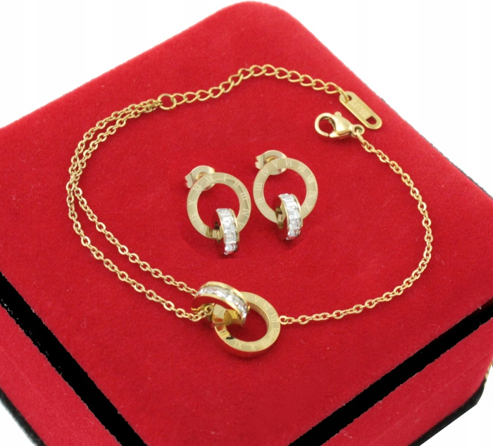 Komplet biżuterii 3 częściowy wykonany ze stali chirurgicznej naszyjnik , bransoletka i kolczyki