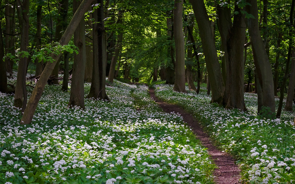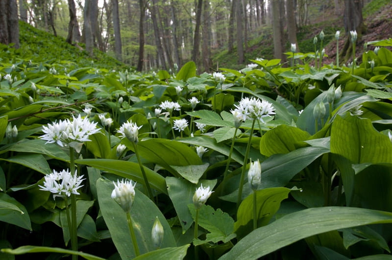 Czosnek niedźwiedzi (Allium ursinum) to wieloletnia roślina zielna, Charakteryzuje się dużymi, zielonymi liśćmi oraz białymi, kulistymi kwiatami, które pojawiają się wiosną. Czosnek niedźwiedzi jest ceniony nie tylko za swoje walory smakowe, ale także za właściwości zdrowotne - ma działanie przeciwbakteryjne, przeciwgrzybicze oraz wspomaga układ odpornościowy.