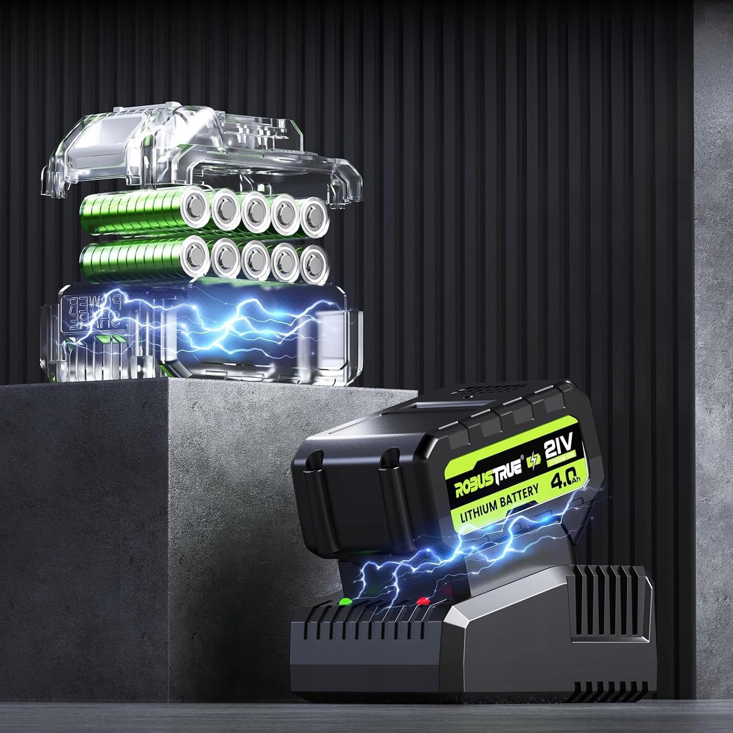 Wraz z kluczem udarowym ROBUSTRUE w zestawie otrzymują Państwo aż 2 wydajne akumulatory litowo-jonowe o pojemności 4.0Ah każdy, które przeszły rygorystyczne testy ładowania 1000 cykli, aby zapewnić trwałość i żywotność. Szybka ładowarka skraca czas ładowania do 1-2 godzin, co zwiększa wydajność pracy!