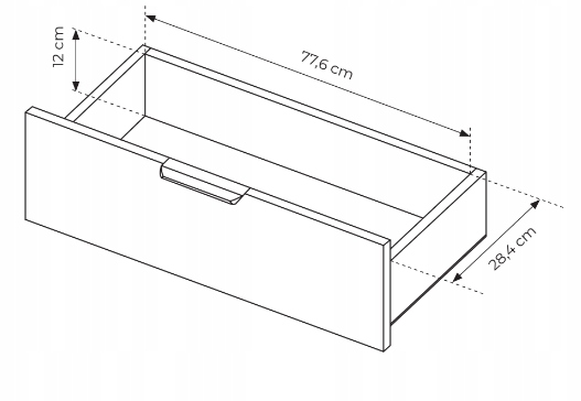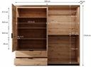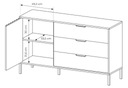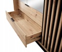Komoda wyposażona jest w 3 pojemne szuflady znajdujące się po prawej stronie, natomiast po lewej stronie na frontach drzwi zastosowano ozdobne lamele.