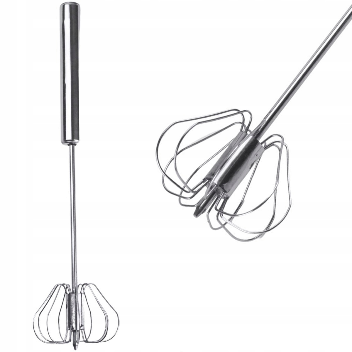 Вращающийся венчик для яиц из нержавеющая сталь, устойчивая к царапинам и механическим повреждениям.