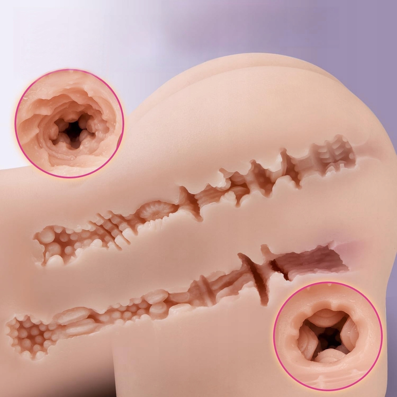 ✴️Pochwa i odbyt są ciasne jak u młodej dziewicy, wypełnione stymulującymi prążkami i wypustkami, które wzmacniają doznania podczas masturbacji, dając intensywny orgazm z mocnym wytryskiem.