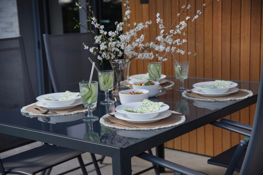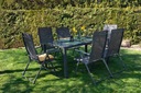 MAJORCA o idealny komplet dla 6 osób, który sprawdzi się zarówno podczas rodzinnych obiadów, jak i wieczornych spotkań w ogrodzie. Ten zestaw mebli to połączenie wygody, funkcjonalności i ponadczasowej elegancji – odpoczynek w najlepszym stylu!