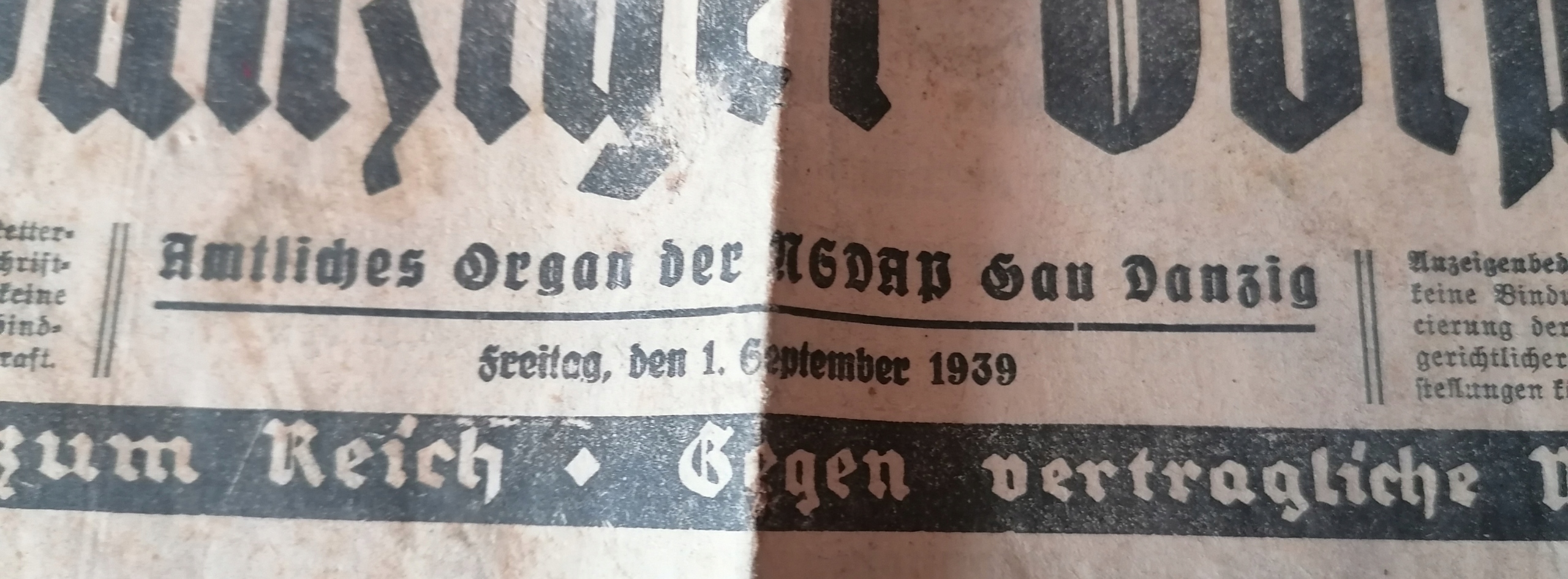 НЕМЕЦКАЯ ГАЗЕТА ОТ 1 СЕНТЯБРЯ 1939 ГОДА