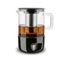 Dzbanek do herbaty z zaparzaczem Konighoffer Bonito 1 l został wyprodukowany ze szkła borokrzemowego. Jest ono lekkie, ma krystaliczną strukturę i świetnie podkreśla barwę napojów. Ma również dużą odporność na szok termiczny, zarysowanie i matowienie. W takim dzbanku możesz więc robić gorącą herbatę i domową lemoniadę z kostkami lodu. W zestawie znajduje się też nierdzewny wkład w postaci zaparzacza. Dzięki niemu sprawnie zaparzysz herbatę liściastą i oddzielisz namoknięty susz od napoju. Pokrywa dzbanka wykonana jest z czarnego tworzywa sztucznego. Chroni zawartość przed zanieczyszczeniem. Zabezpiecza też przed rozlaniem podczas przenoszenia. Produkt ma również wylewkę do precyzyjnego nalewania. Szklany dzbanek umyjesz w zmywarce. Elegancko rozbudujesz także serwis deserowy, który codziennie używasz w swoim domu. Ceramiczny podgrzewacz zadba, by ciepłe napoje dłużej zachowały wysoką temperaturę np. podczas spotkania przy deserze.