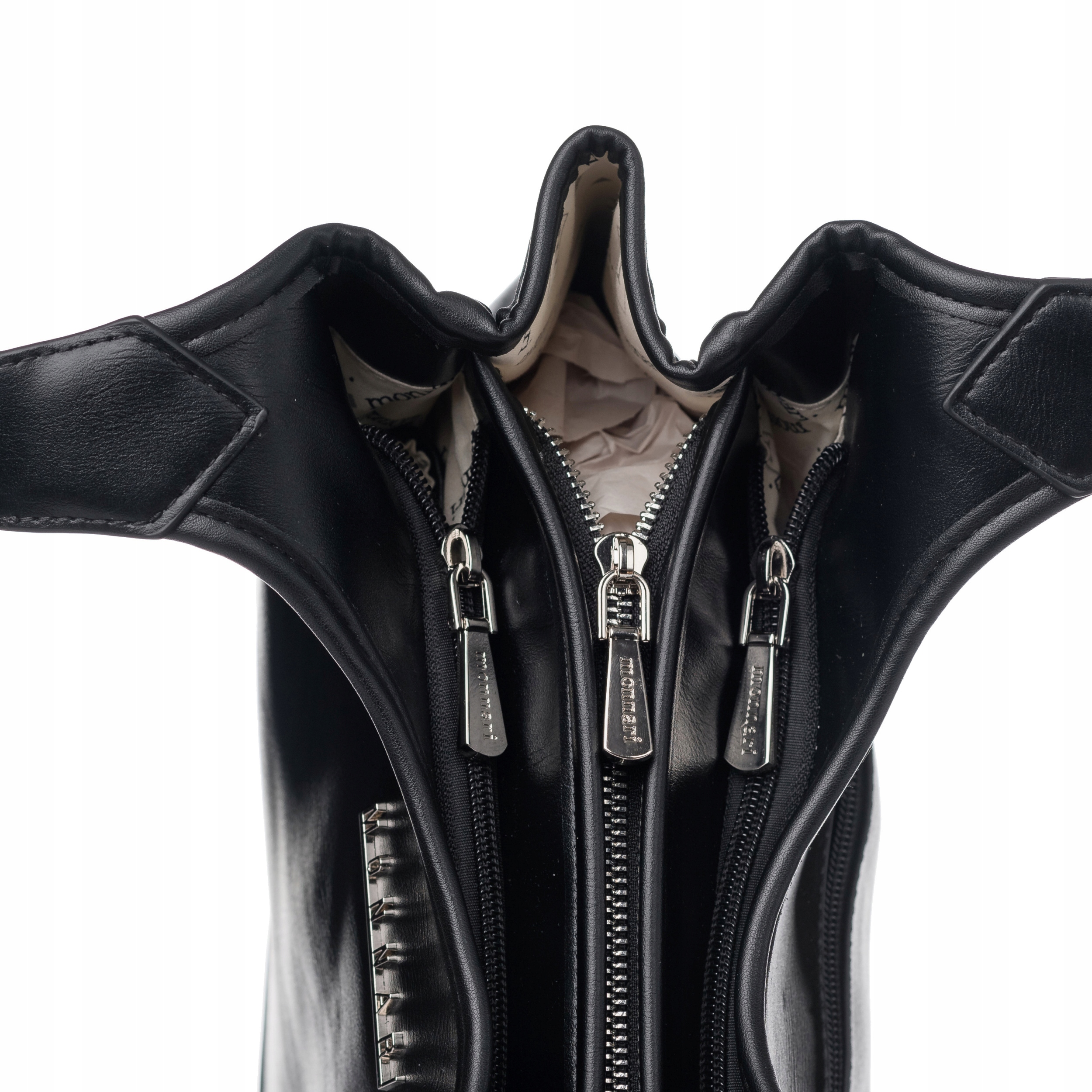 Trójkomorowa torba damska zawieszona na wygodnych rączkach. Torba z biżuteryjnym logo marki Monnari w minimalistycznym stylu. Każda komora z jasną podszewką, zapinana na suwak wewnątrz zawiera również dodatkowe kieszonki na drobiazgi, dzięki czemu model ten jest niezwykle pojemny.
