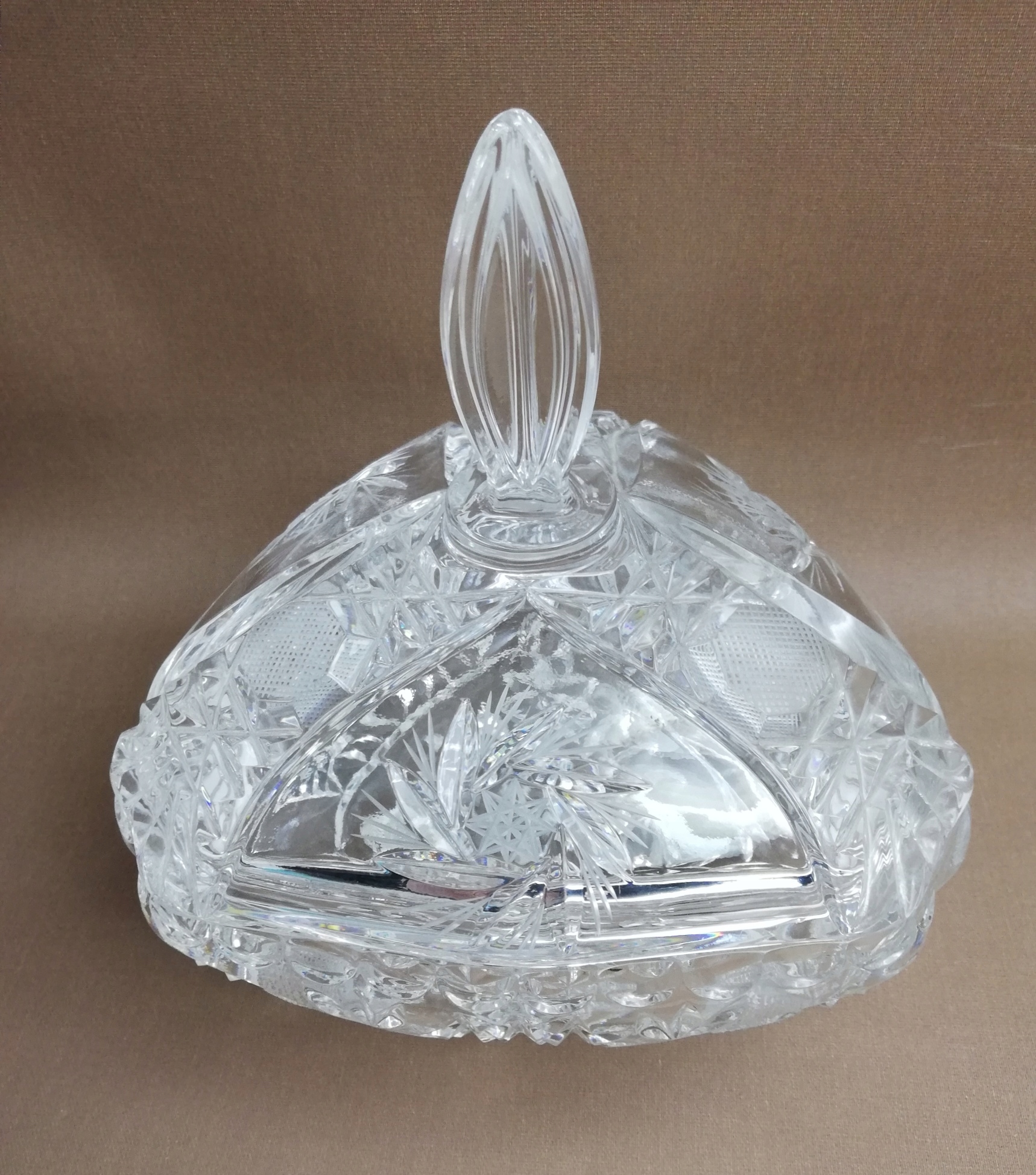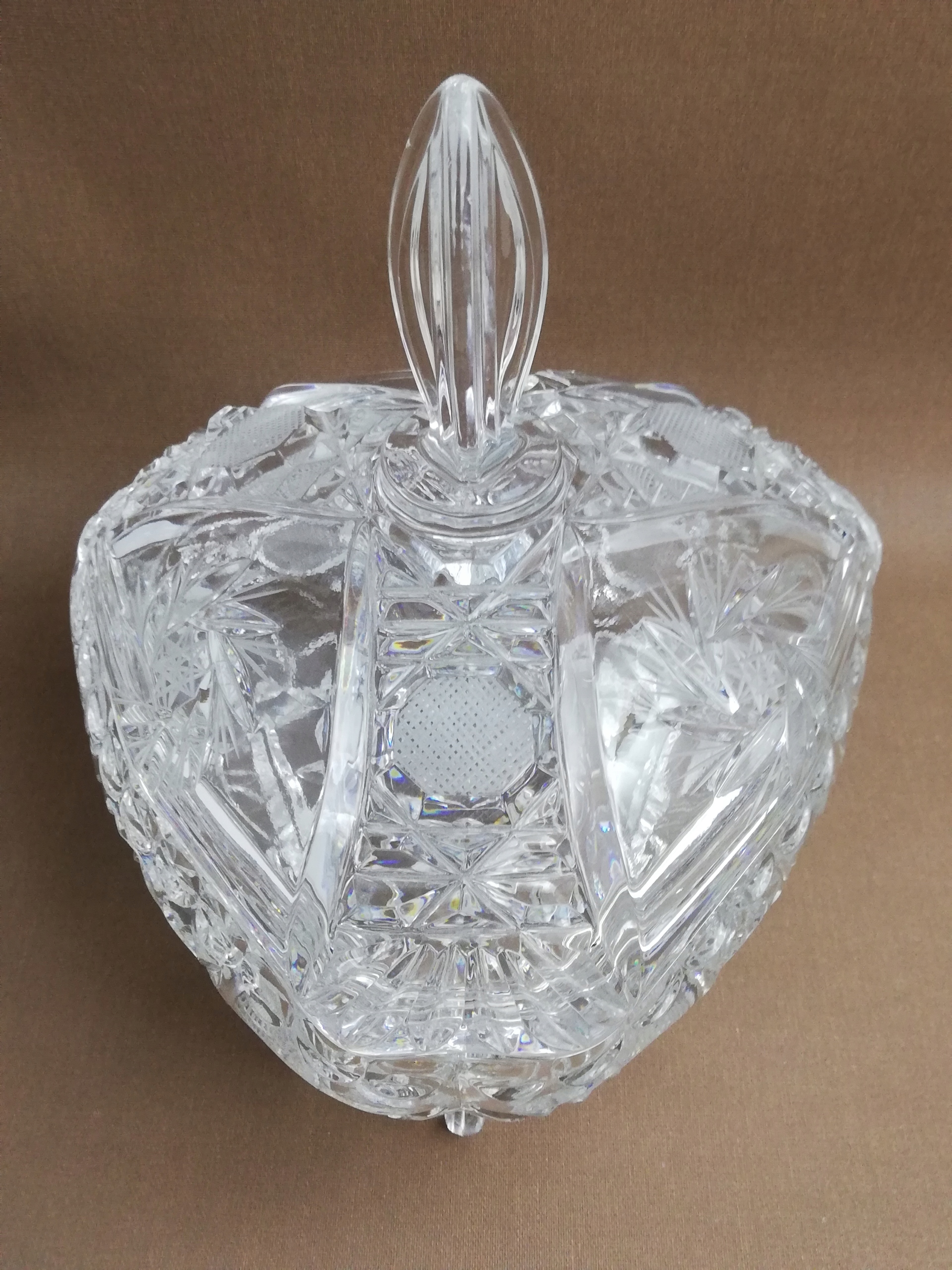 Stara kryształowa bomboniera , szkło kryształowe zdobione szlifem , pochodzące z okresu Prl-u