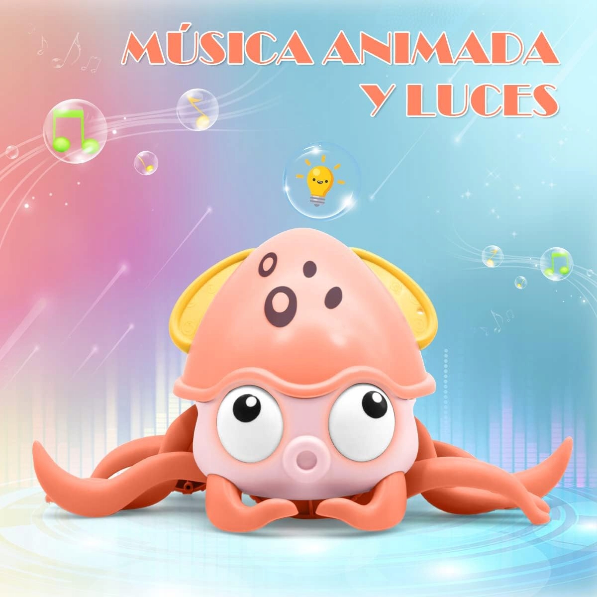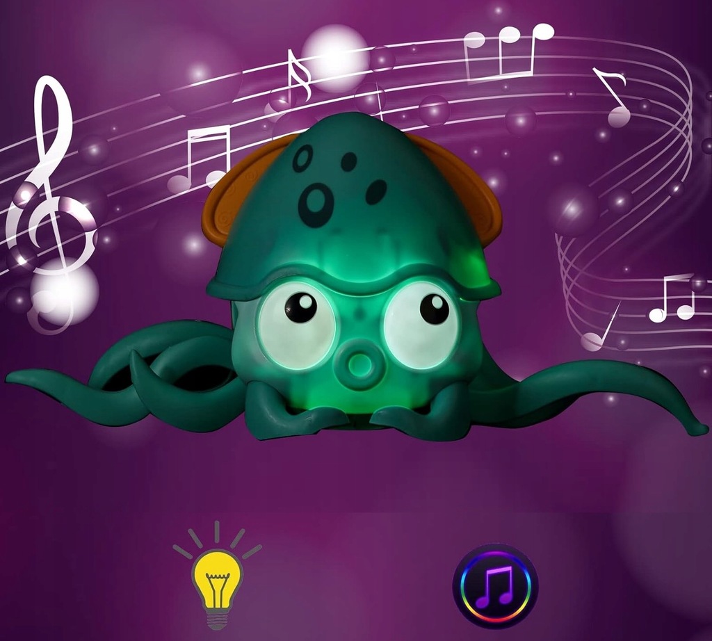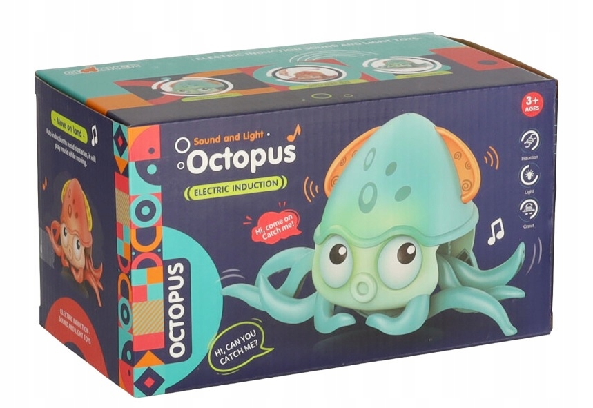 Oprócz pełzania ośmiorniczka również odtwarza muzykę - dzięki temu podczas zabawy, zmysł słuchu dziecka również będzie stymulowany.