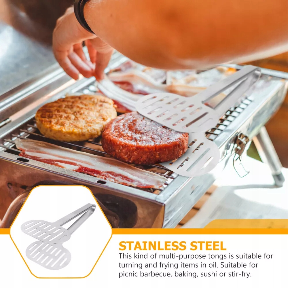 Wykonane przez najwyższej jakości stal nierdzewną, kompaktowe i praktyczne. Nadaje się do grilla piknikowego, pieczenia, sushi lub smażenia potraw itp. Odporność na wysoką temperaturę, bezpieczeństwo i ochrona środowiska. Ten wielozadaniowy szczypce jest dobry do przewracania i smażenia przedmiotów w oleju. Produkt jest szczypcem spożywczym do kuchni.