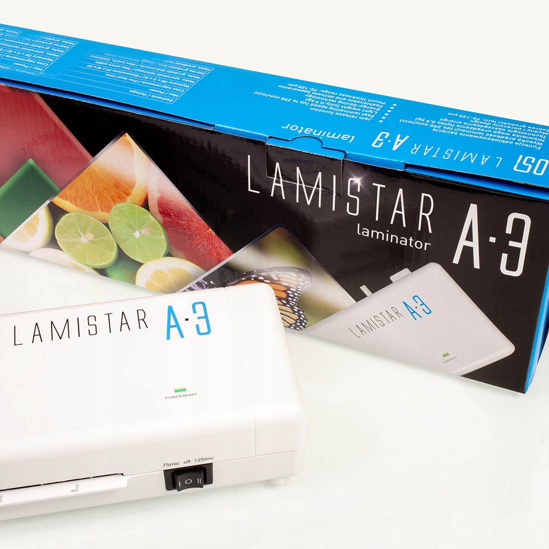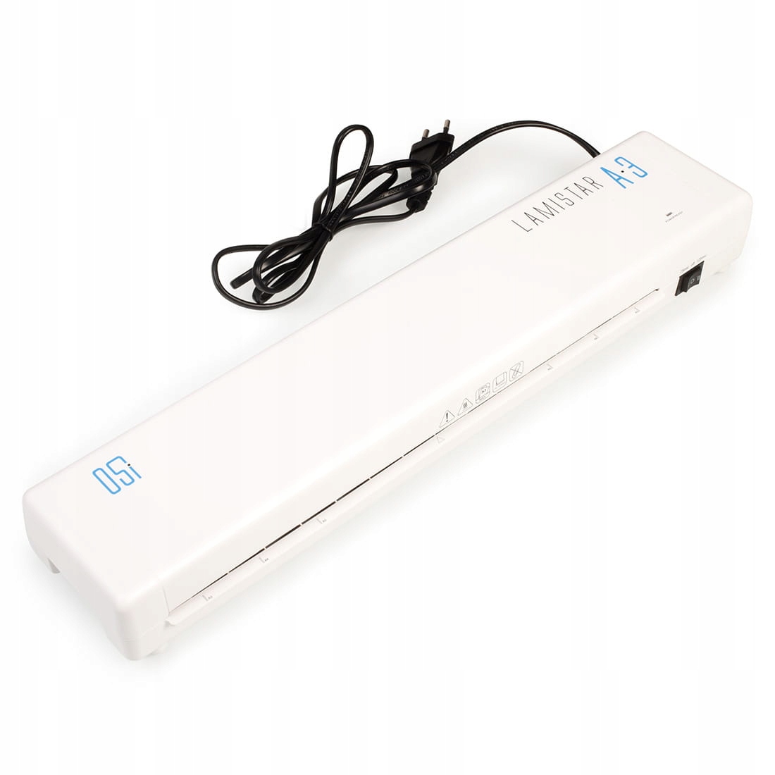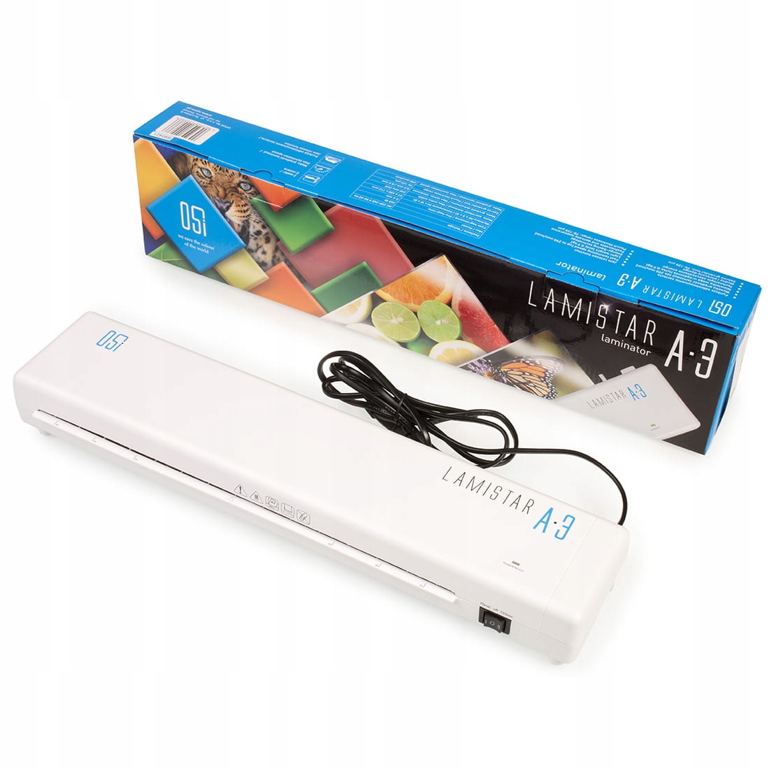 Laminator OSI Lamistar A3 to model przeznaczony do większych formatów, co daje jeszcze więcej możliwości – możesz przygotowywać wizytówki, standardowego rozmiaru dokumenty czy materiały o formacie A3. Urządzenie wyposażone jest w dwa wałki precyzyjnie scalające brzegi folii, funkcję sprawnego wycofywania zaciętych dokumentów i technologię oszczędzania energii. Obsługuje folie o grubości od 75 do 125 µm i laminuje z prędkością 290 mm/min. Choć za jego pomocą można laminować większe formaty, samo urządzenie jest niewielkie – ma jedynie 450 x 112 mm! Laminator OSI Lamistar A3 sprawdzi się w domach, biurach, różnego rodzaju instytucjach czy pracowniach, gdzie drukowane są materiały graficzne w formacie A3.